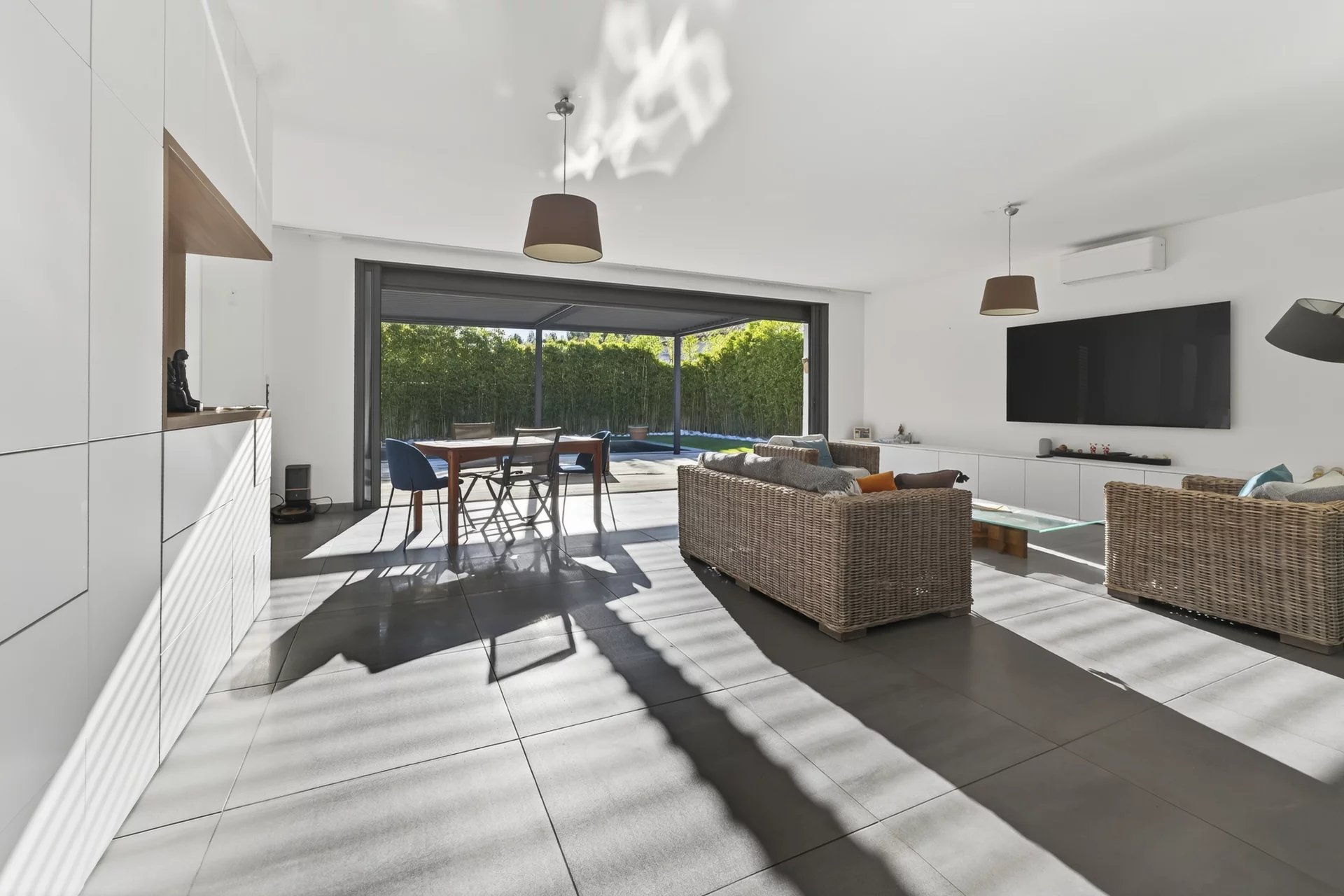 Designed for comfort and natural light, it features a spacious 50 m2 living area extended by a fully equipped open kitchen. Large sliding glass doors create a seamless flow between the interior and exterior, leading to the terrace, bioclimatic pergola, and heated swimming pool.