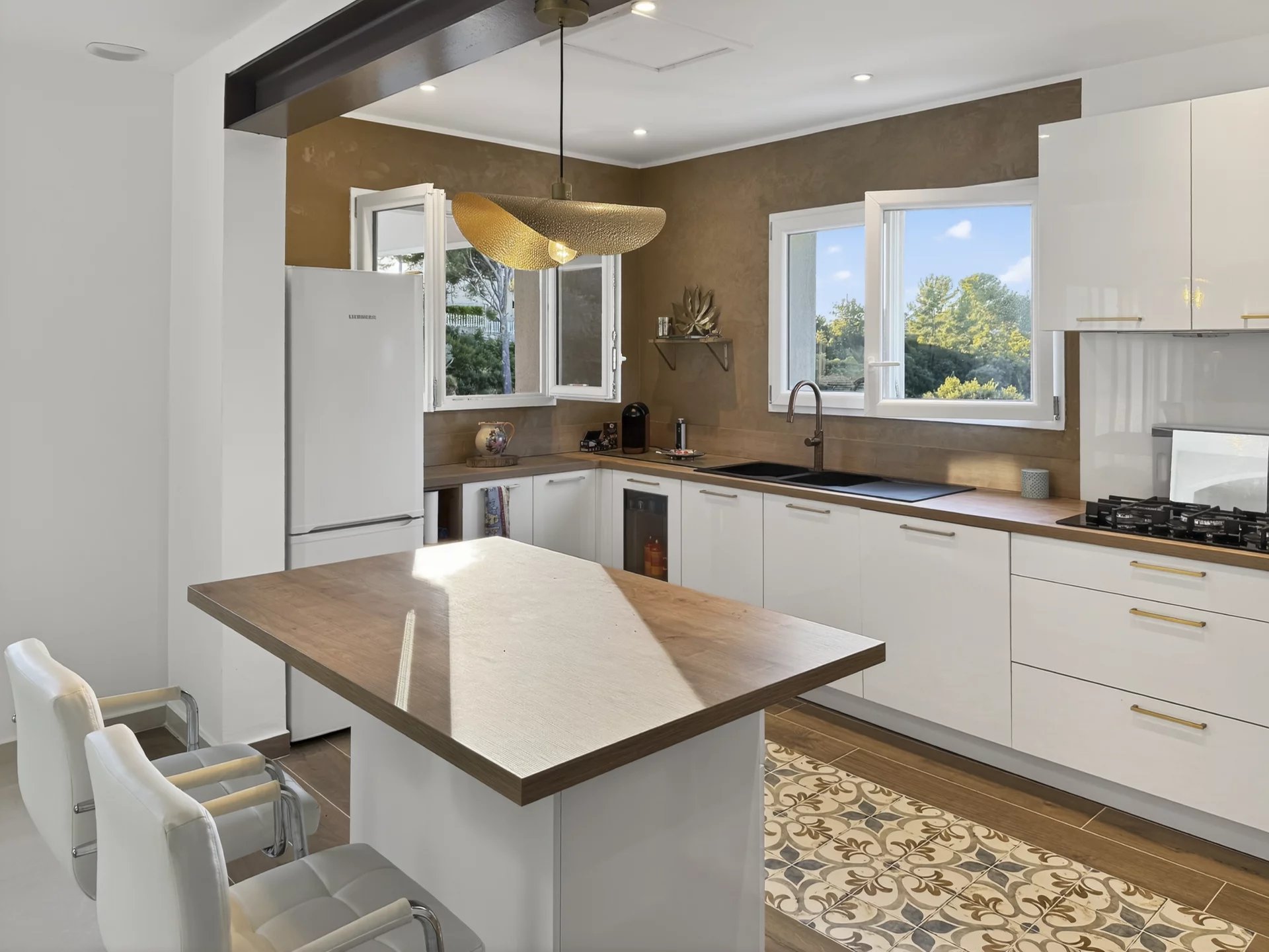 Sanary-sur-Mer, just 5 minutes’ walk from the beaches and 10 minutes from Bandol’s port, an elegant six-room family villa (183 m2), fully renovated, set on landscaped, fully enclosed grounds of 1,215 m2, offering high-quality features.
