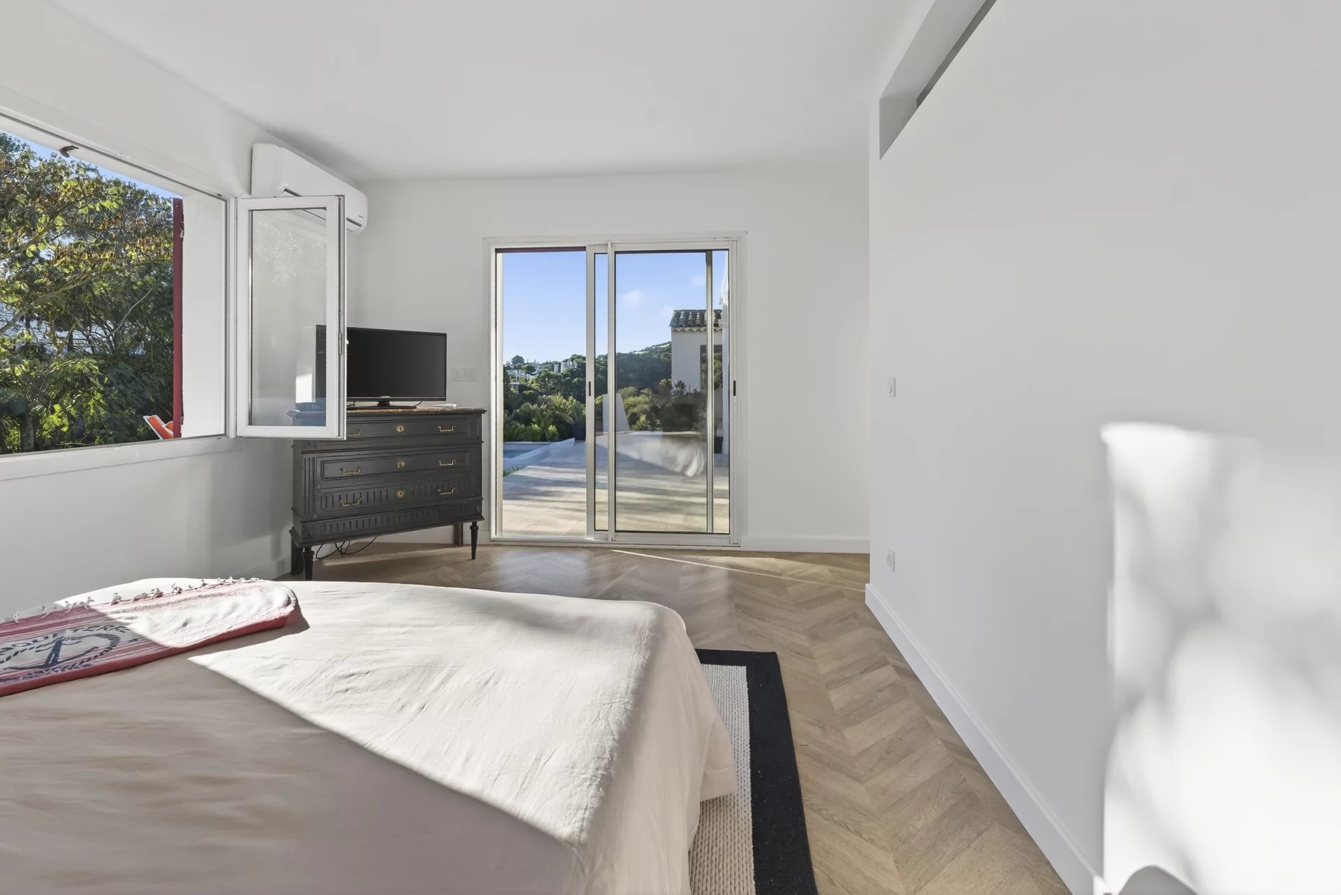 On the ground floor: entrance hall, TV lounge, a spacious living room extended by a dining area with six sliding bay windows opening onto the terraces and pool. The new, fully equipped kitchen includes an outdoor pass-through for summer dining. This level also offers a home office, a separate WC, and a primary suite with dressing room and shower room.