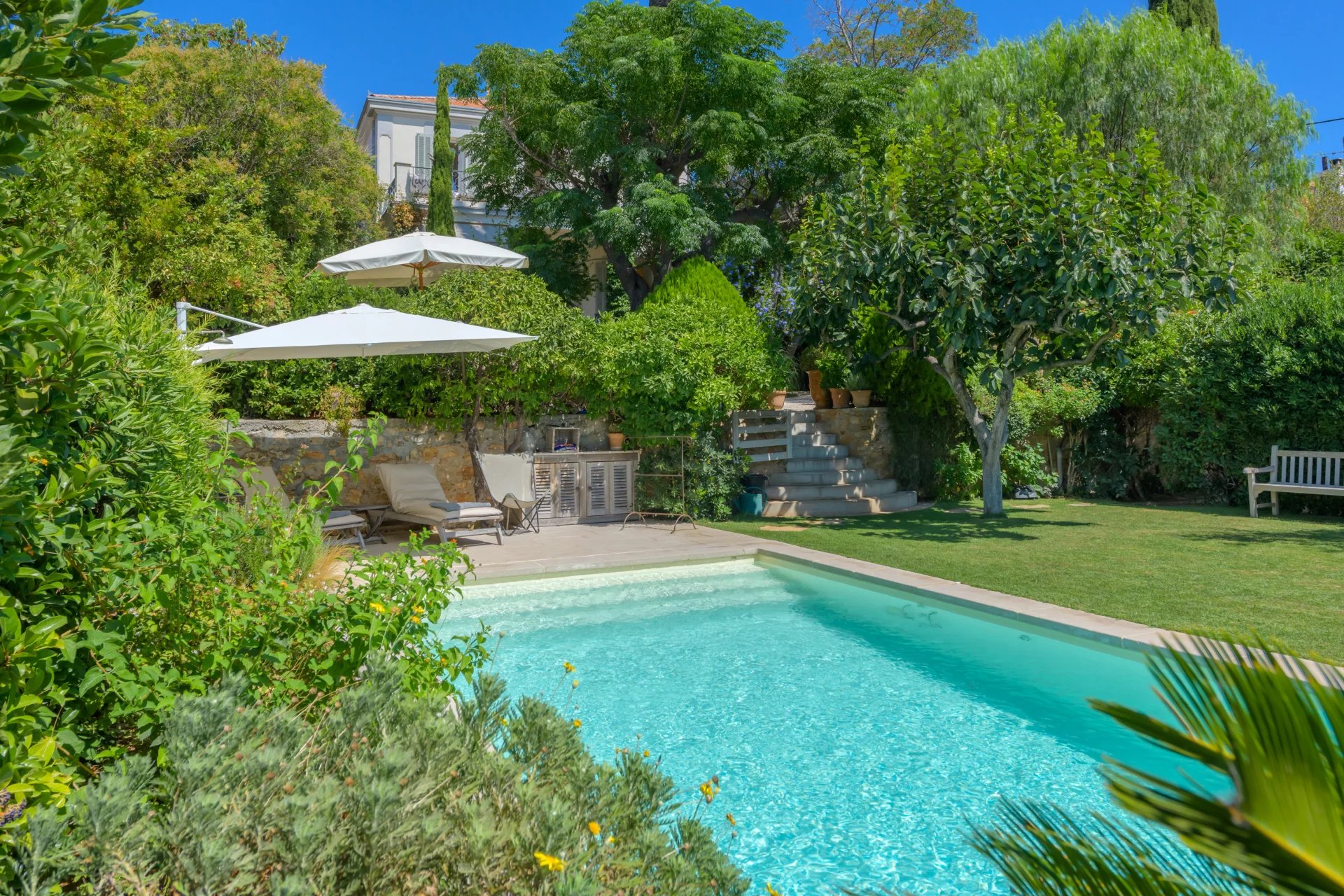It has been fully renovated and is in excellent condition, offering sea views, a lush garden, a secure heated saltwater pool, a garage, and several parking spaces.