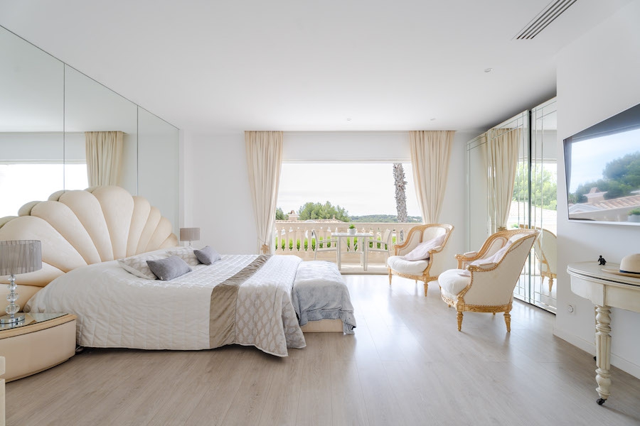 Upstairs, a huge master suite offers you a private space with dressing room, bathroom, and bedroom opening onto a vast terrace with partial sea view.