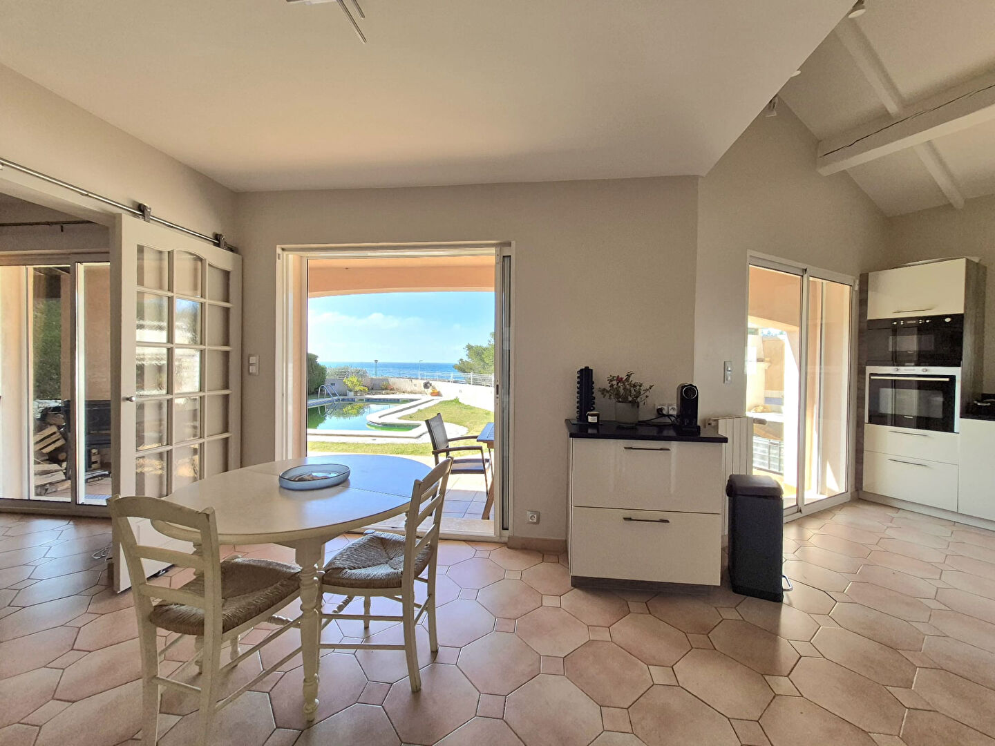 This charming architect-designed villa boasts exceptional sea views, with every space thoughtfully conceived to maximize natural light and immediate proximity to the coastline. From the moment you enter, a luminous living room with panoramic sea outlook welcomes you, opening onto a terrace that seamlessly extends the living space outdoors. A functional kitchen adjoins this convivial area, creating an ideal setting for everyday living and entertaining.