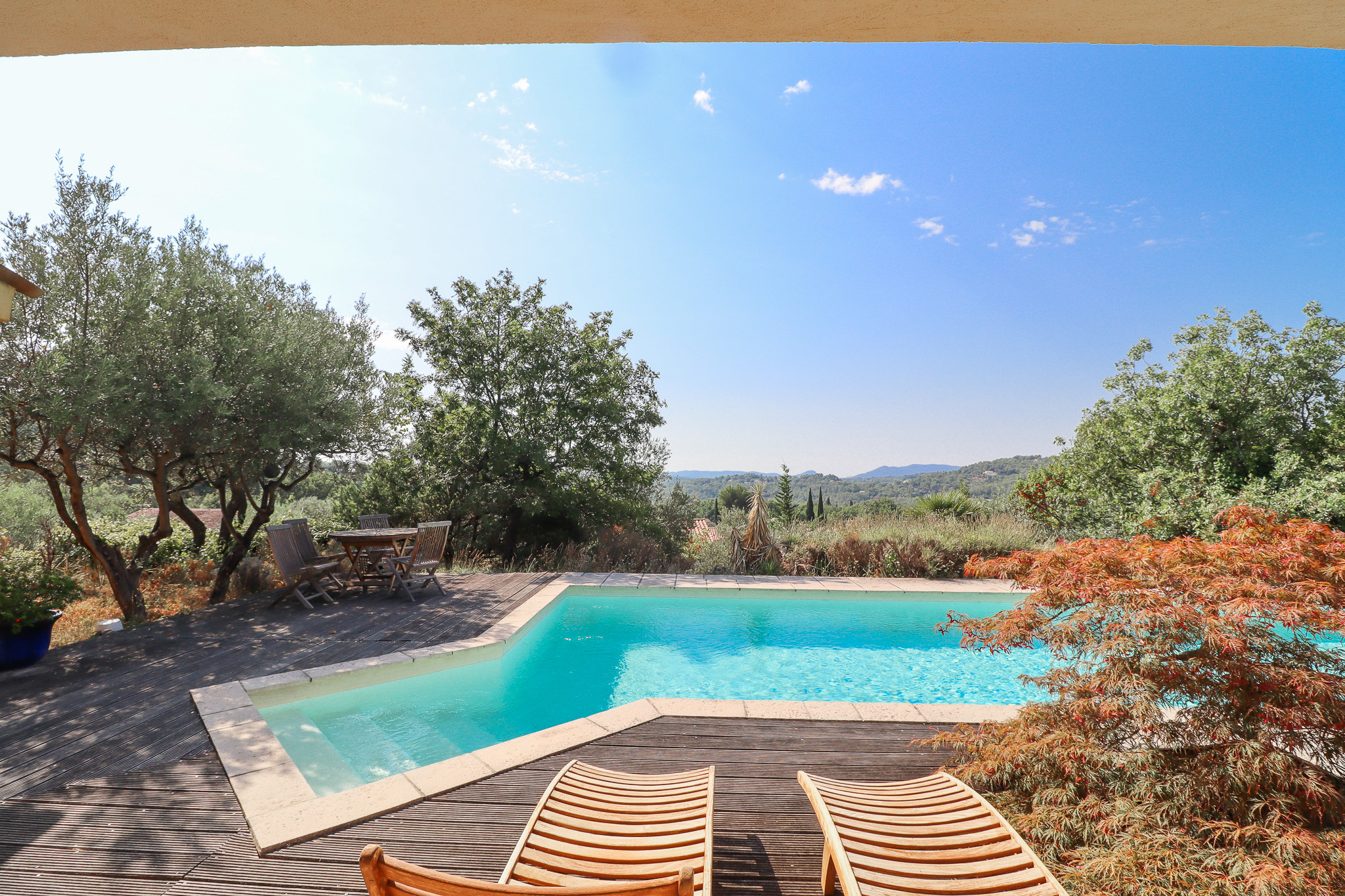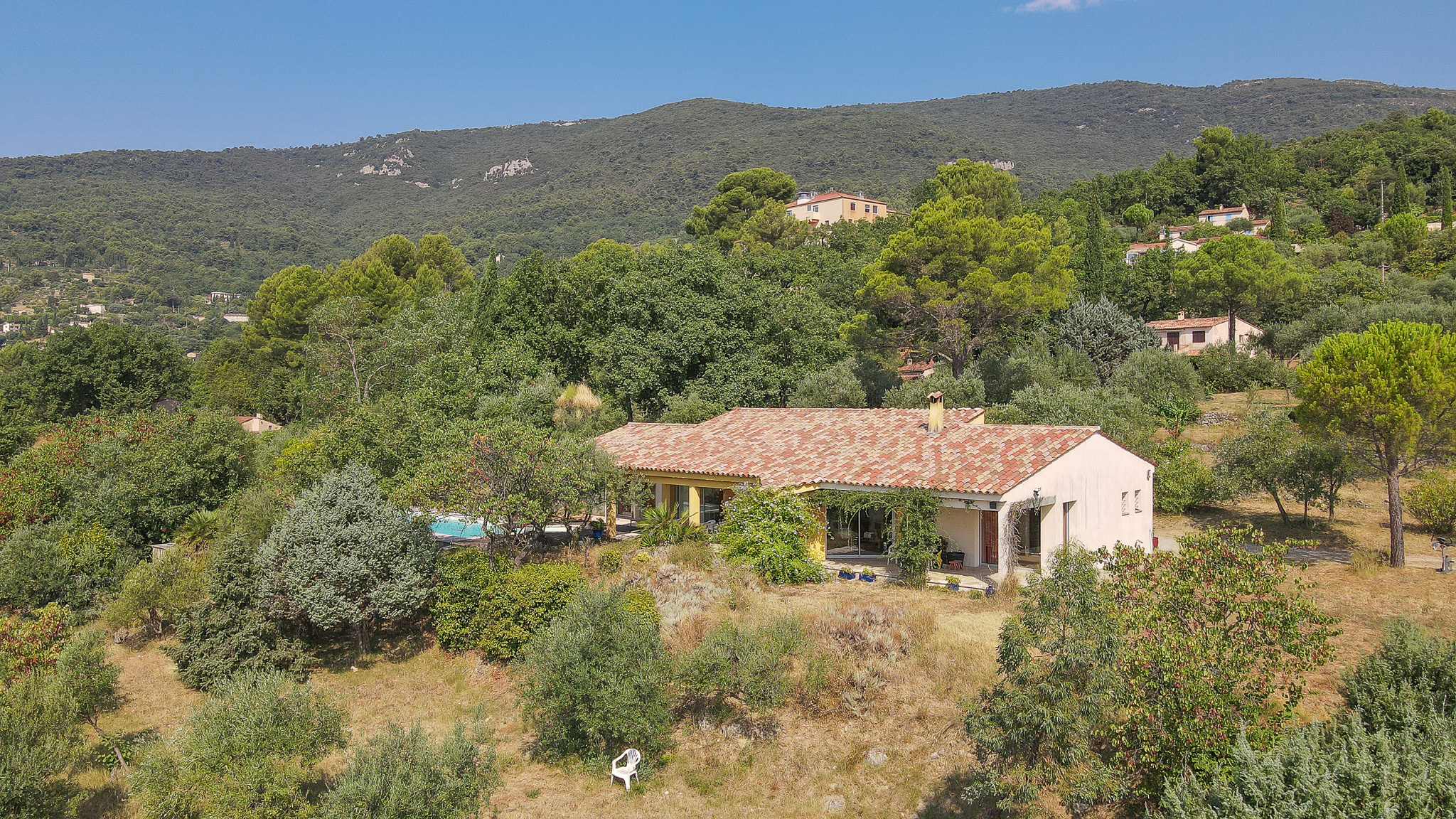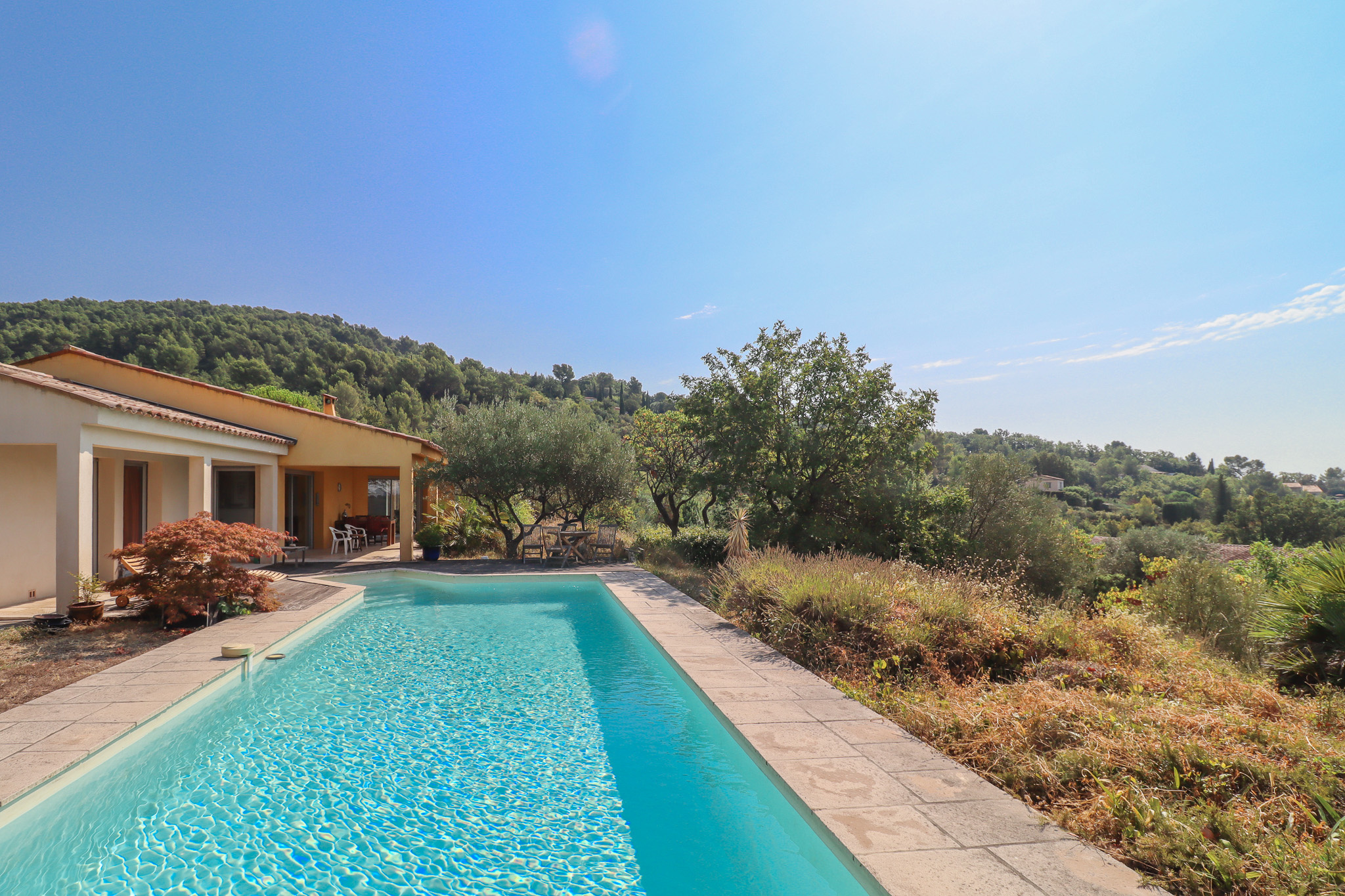 This single-story villa is located in a quiet, south-facing area with a beautiful view and is within walking distance of the historic center of the village of Seillans, classified as one of the most beautiful villages in France.