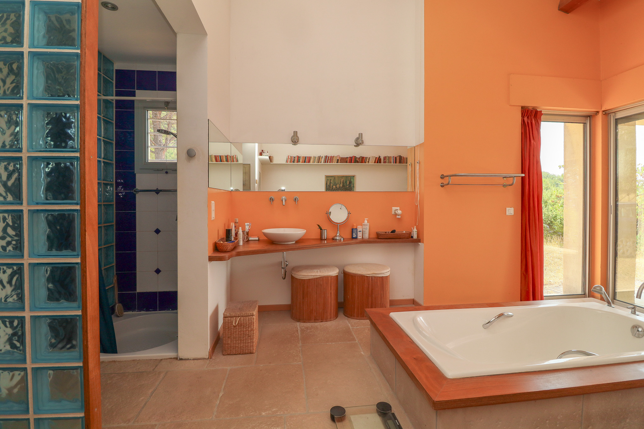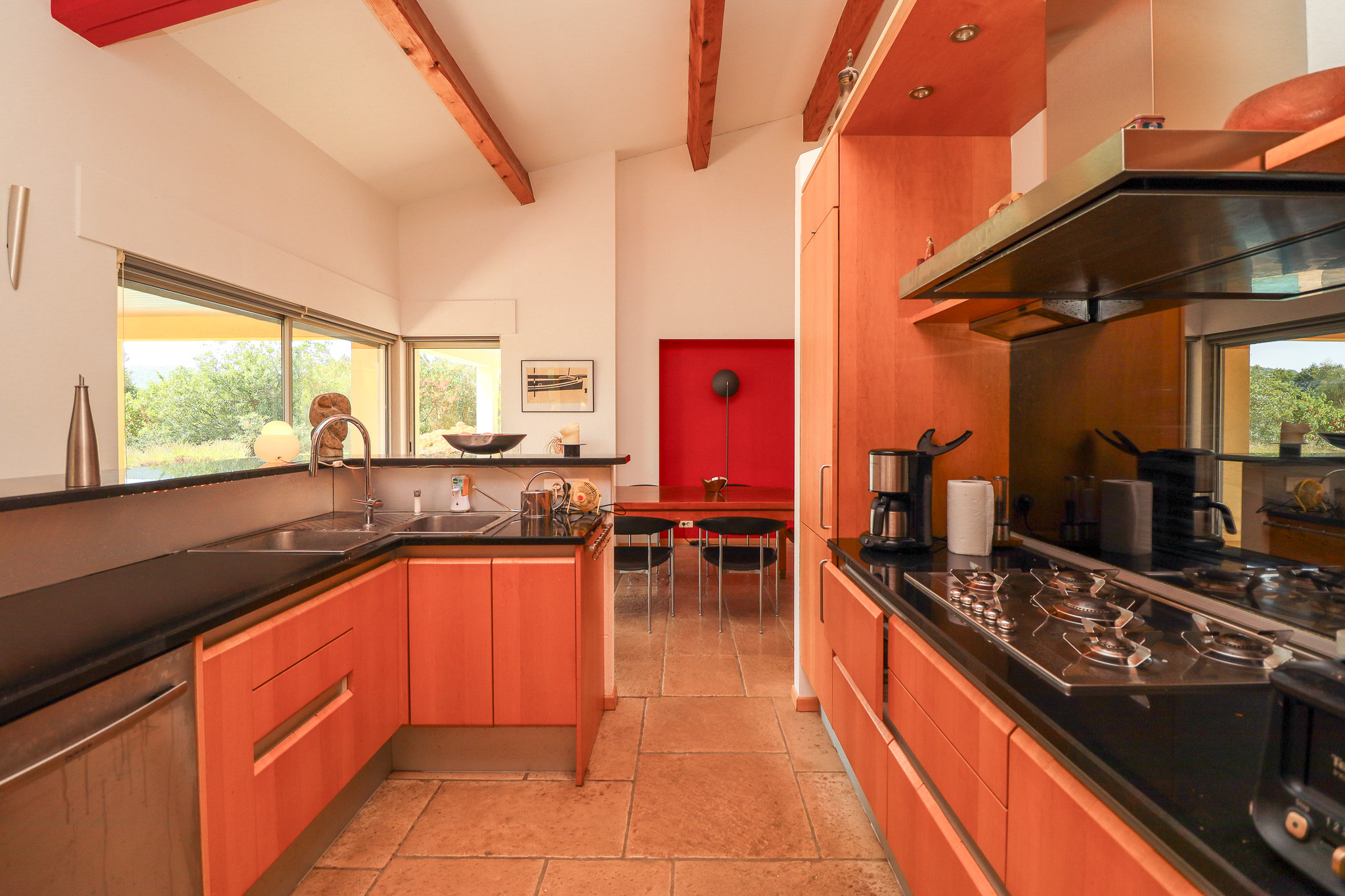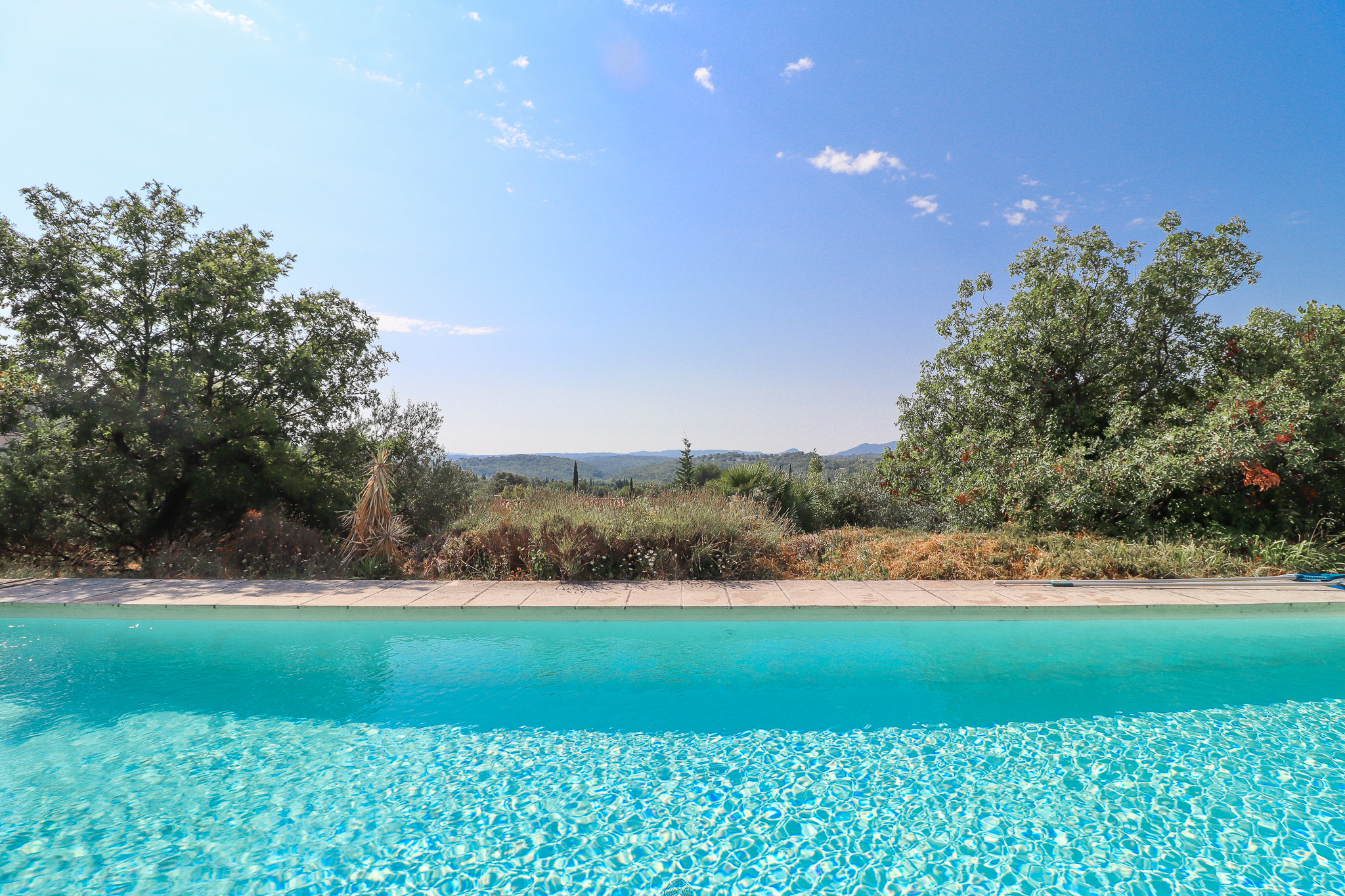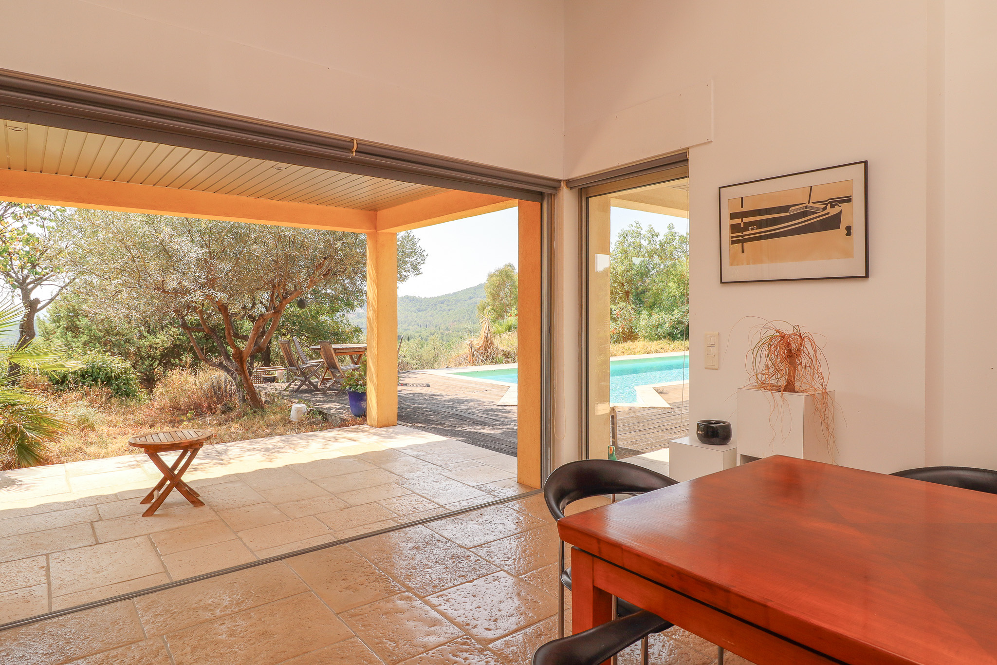 This single-story villa is located in a quiet, south-facing area with a beautiful view and is within walking distance of the historic center of the village of Seillans, classified as one of the most beautiful villages in France.