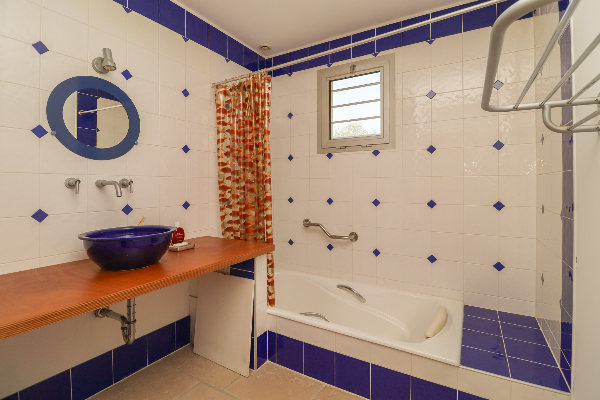 The property comprises: an entrance hall with wardrobe and guest toilet, living room – open-plan kitchen – dining room (55m2) and office. In one wing we find the master bedroom with dressing room, separate toilet, shower and bathtub (31m2) and in the other wing of the house we find 2 bedrooms with a bathroom and separate toilet. All rooms are very bright and enjoy the view. Laundry room. Large garage 21m2 and a carport.