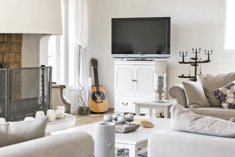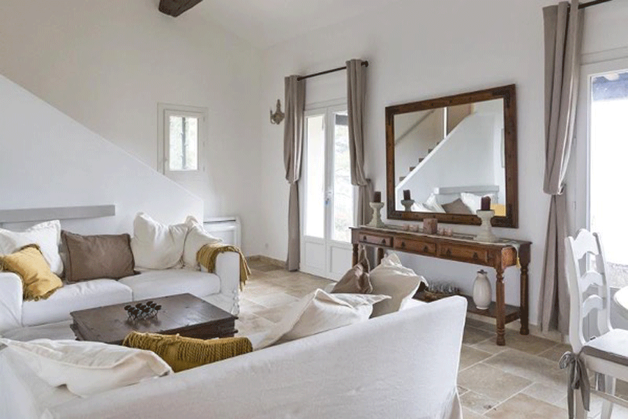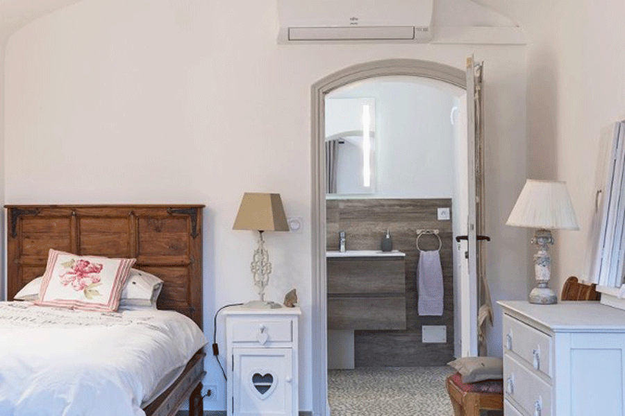 The guest house offers and entrance hall, two bedrooms which share a shower room, living room with fireplace opening onto a terrace, fitted kitchen.