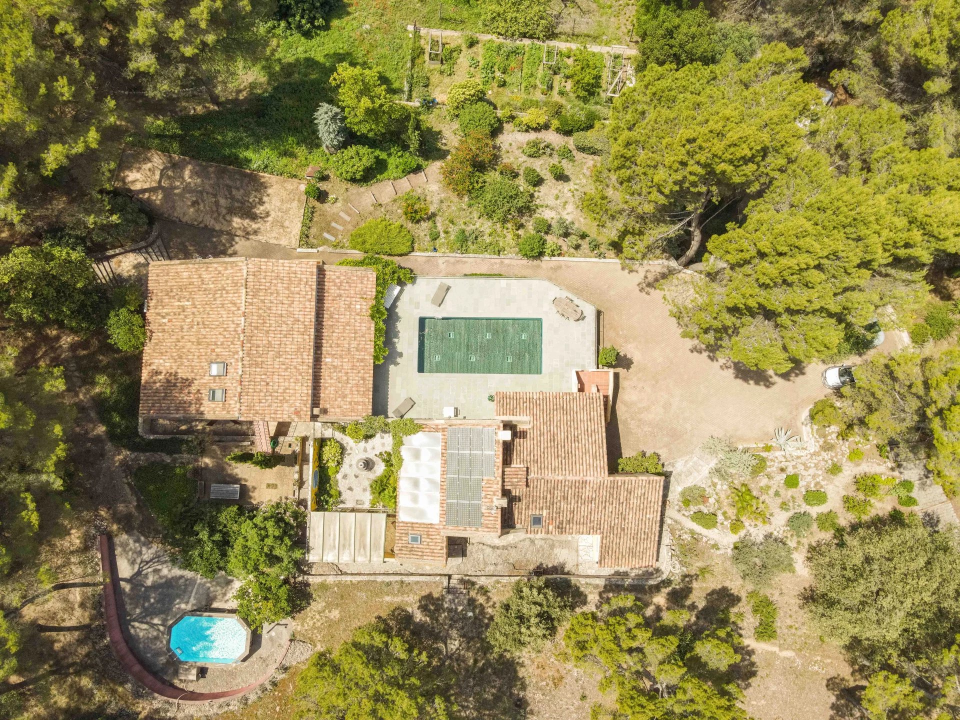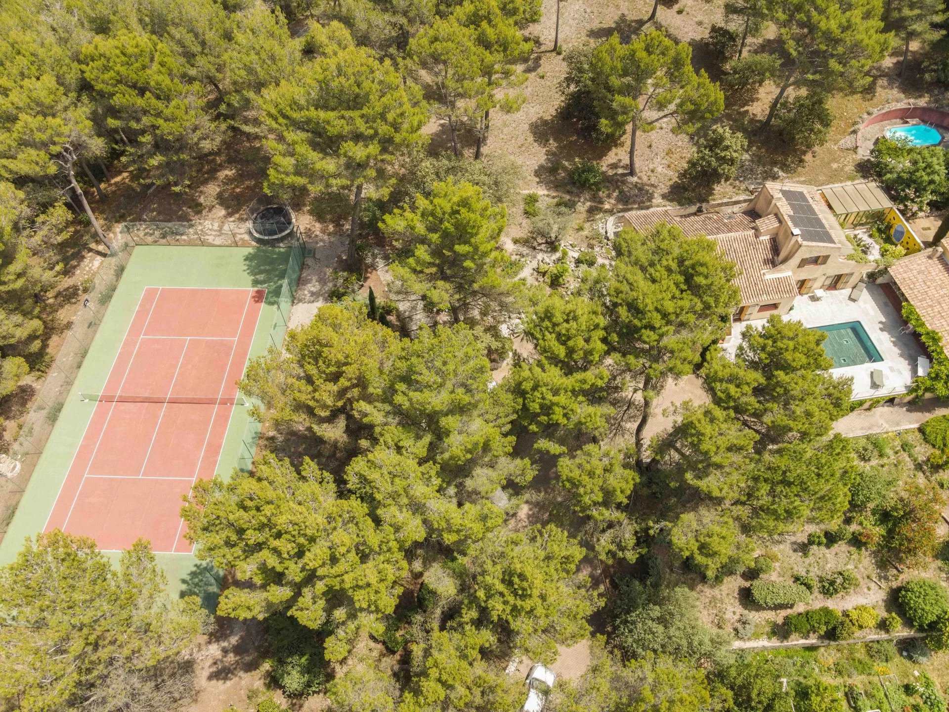 The set consists of a main house, a large apartment, a studio and a 1 bedroom apartment, swimming pool and tennis court.
