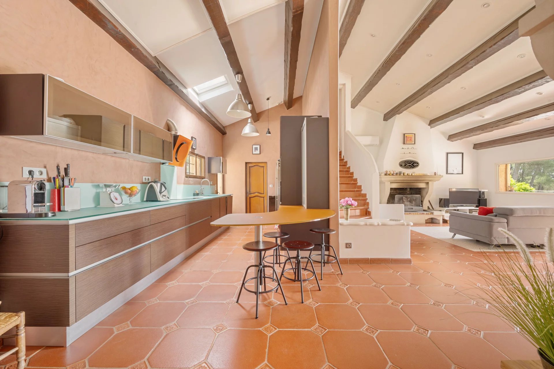 – The main house of about 180 m2 offers 3 bedrooms including a master suite and two bedrooms with a shared bathroom, an office, a living room, a dining room with open kitchen, laundry.