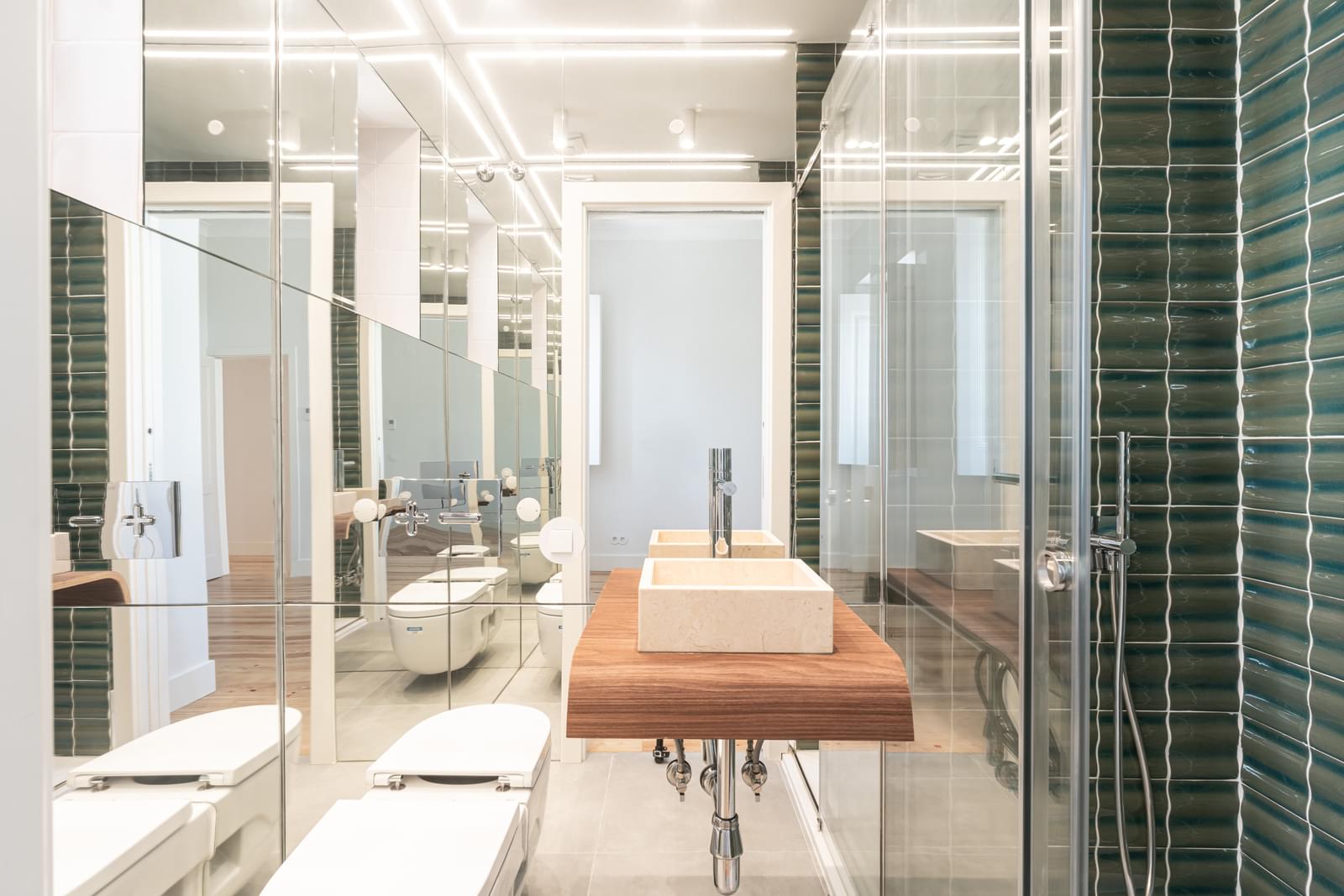 · Bathrooms with custom-made furniture by Marcenaria Castro, Viúva Lamego tiles, and built-in shower systems