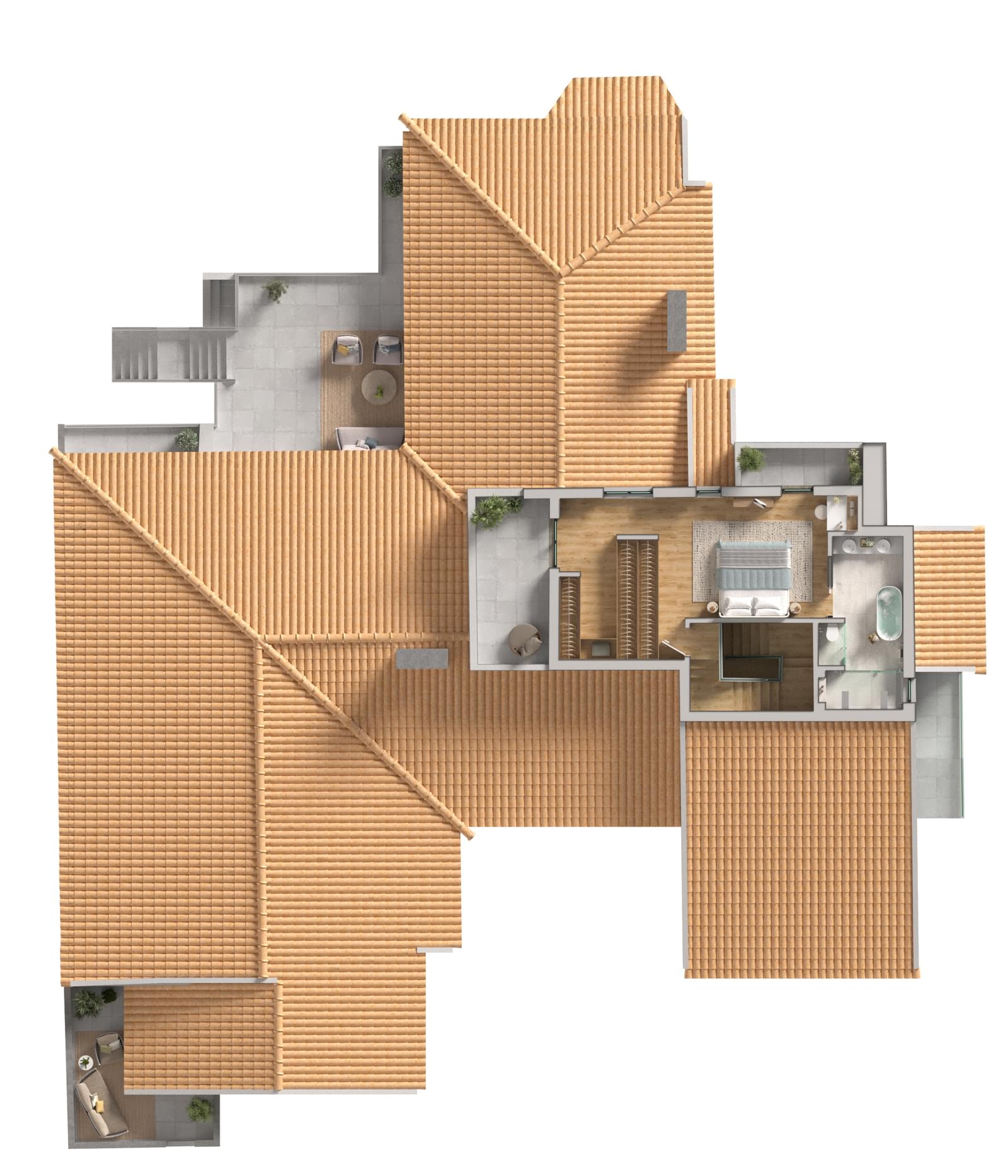 – On the ground floor, a spacious master suite opens directly onto a terrace with sea views, along with three additional suites tucked away from the social areas, ensuring maximum comfort and privacy.