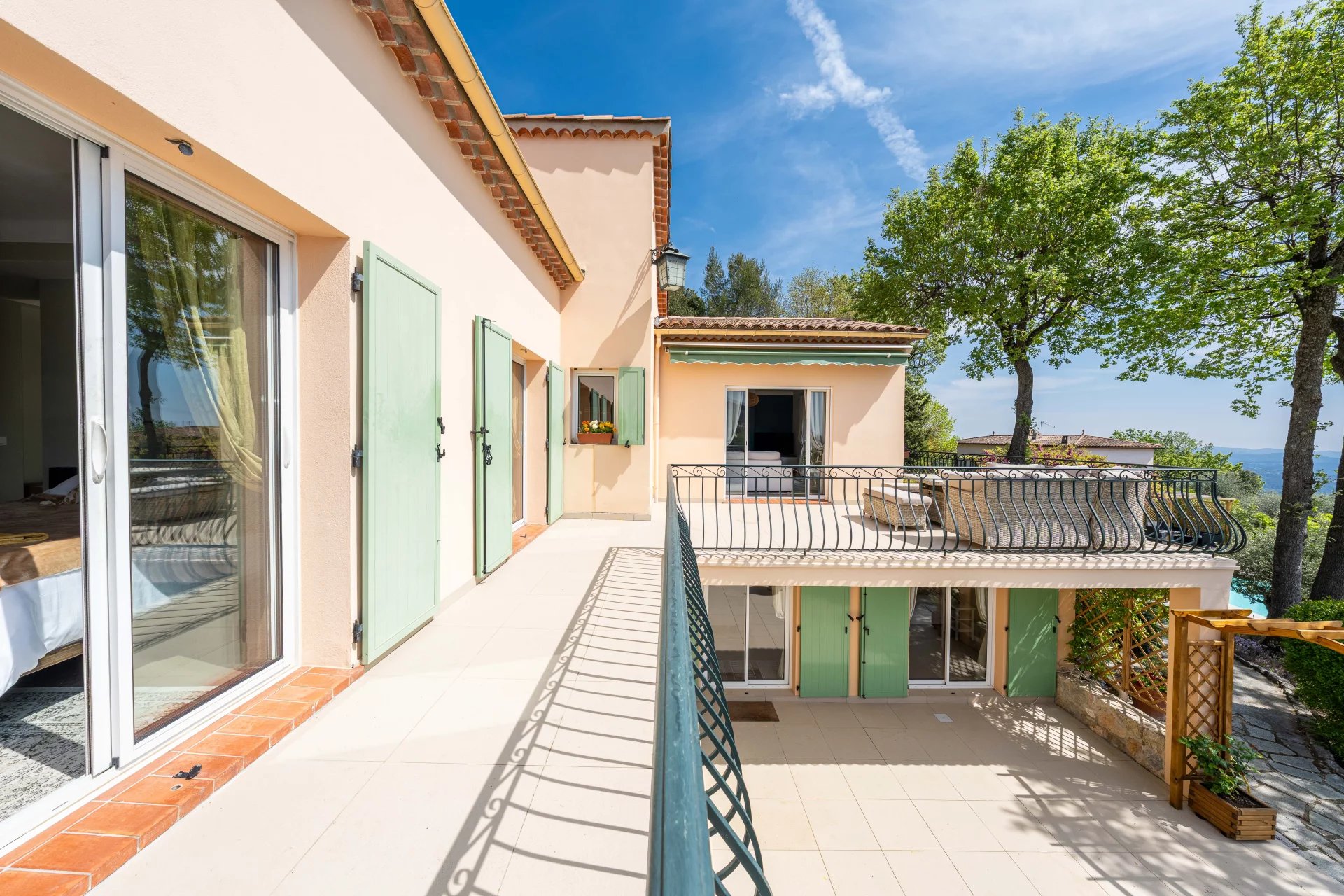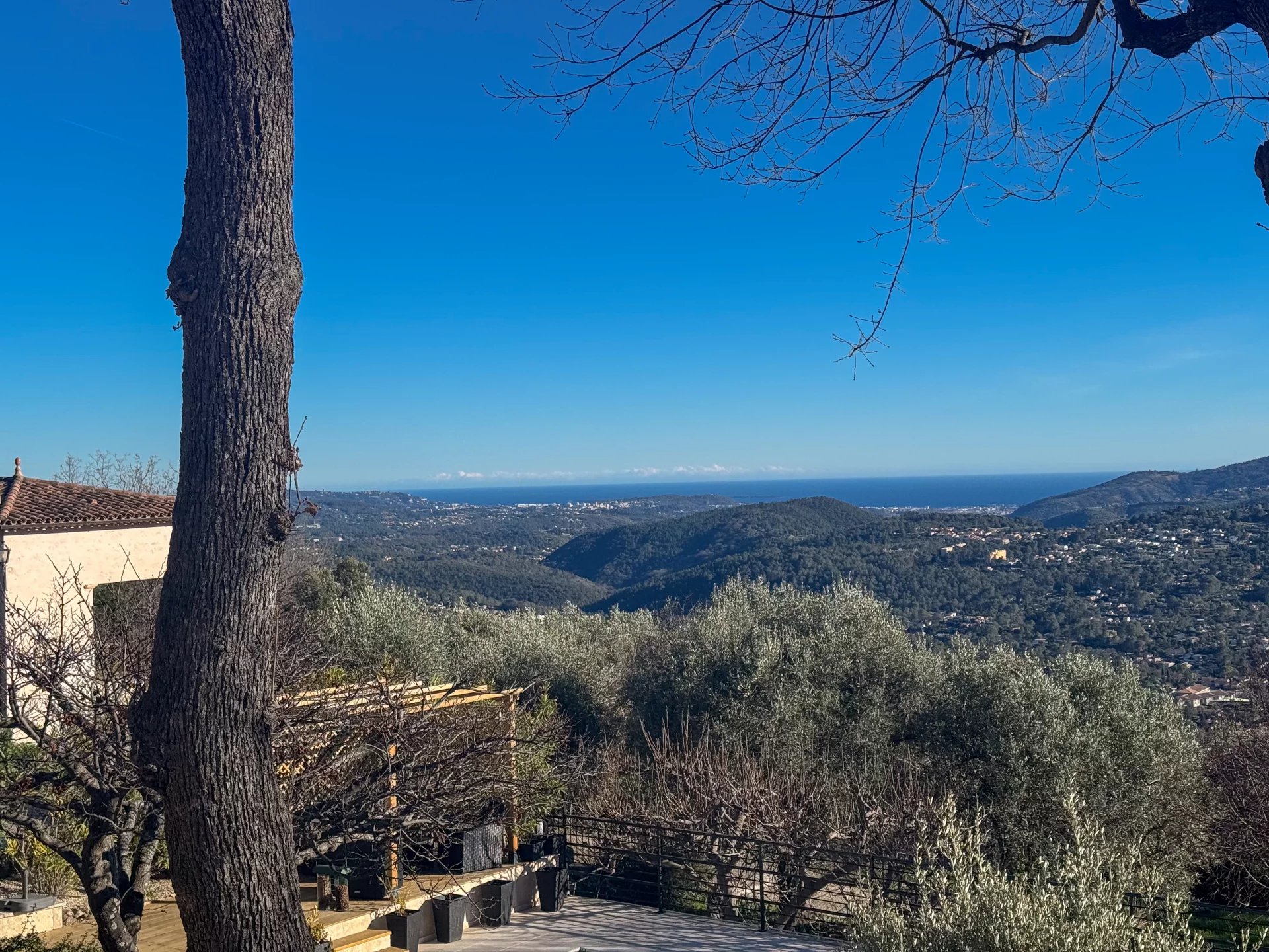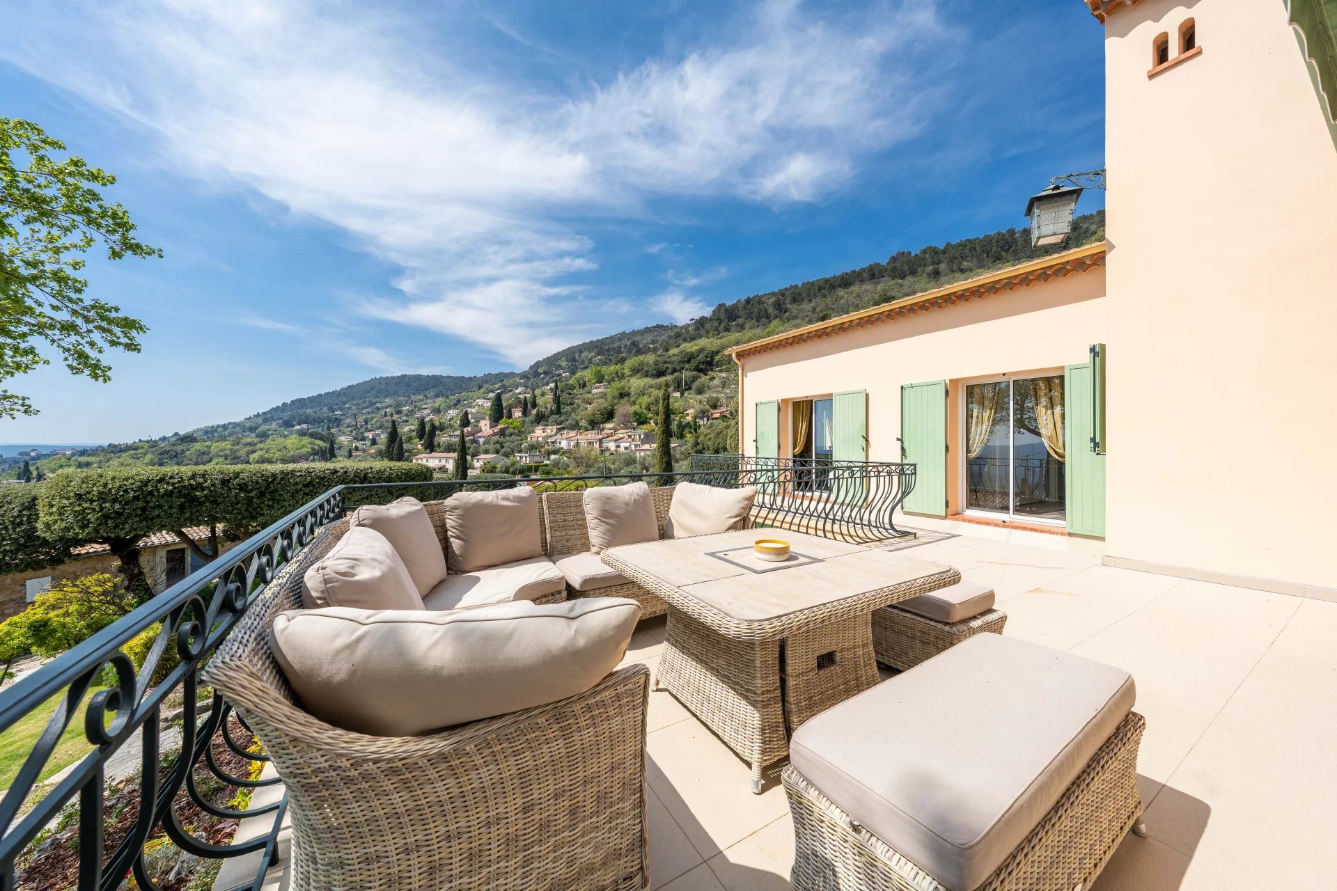 Beautiful villa of approximately 230m2, in excellent condition and requiring no work, offering stunning views over the sea, the lake, the village and the surrounding hills, ideally located on the edge of the village centre in a quiet and privileged setting.