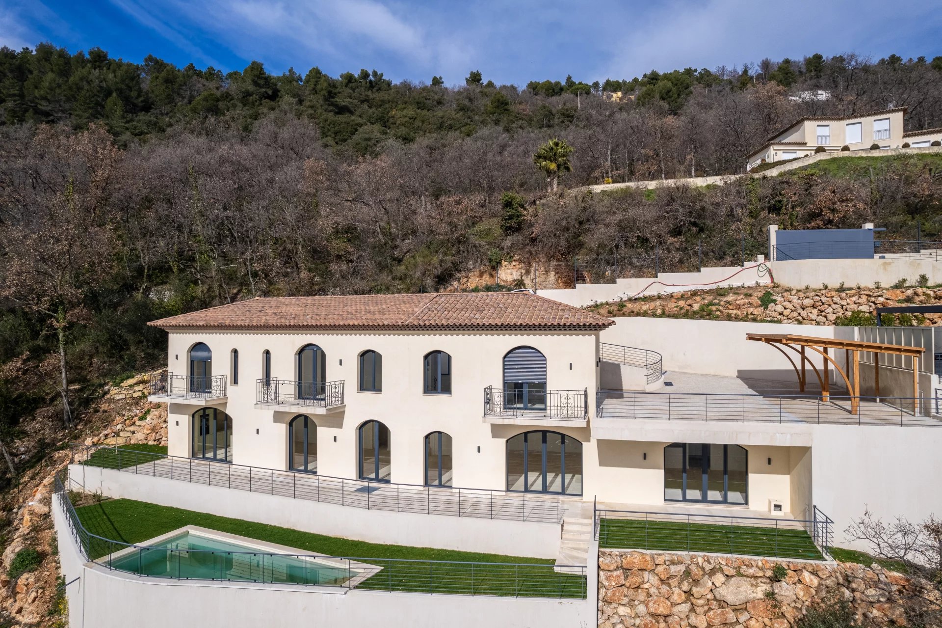 Speracedes, in a dominant position on the hills in a sought-after residential area with breathtaking views of the sea, Lake Saint-Cassien and the hilltop village of Cabris, this beautiful, recently-built villa of around 235 m² is set in total peace and quiet.