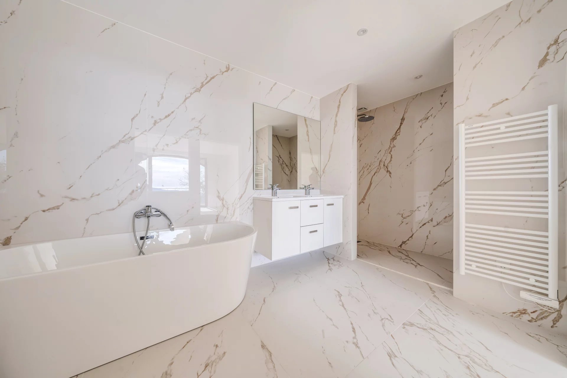 The interior is spacious and bright, with quality finishes and a total of 4 en suite bedrooms.