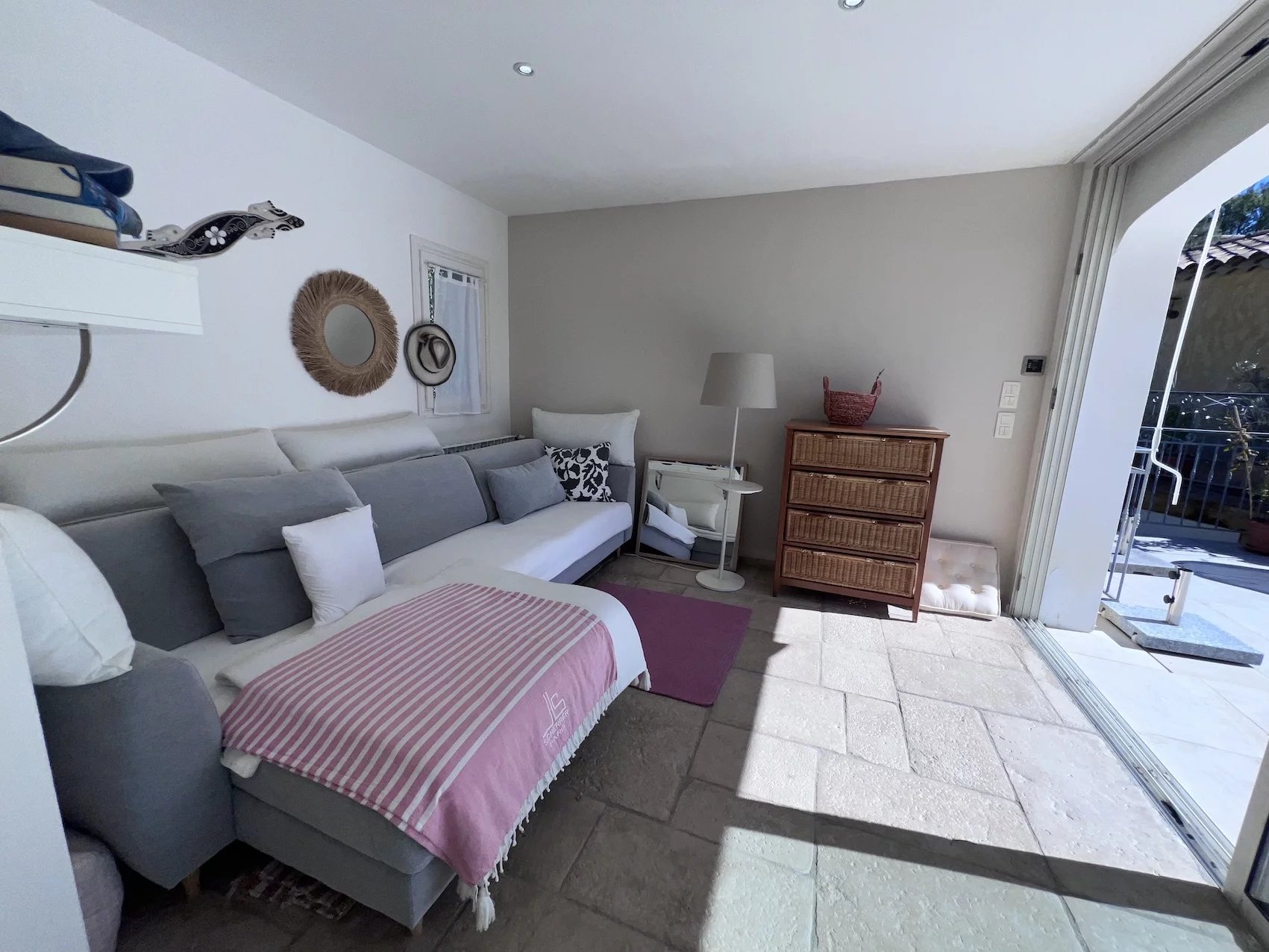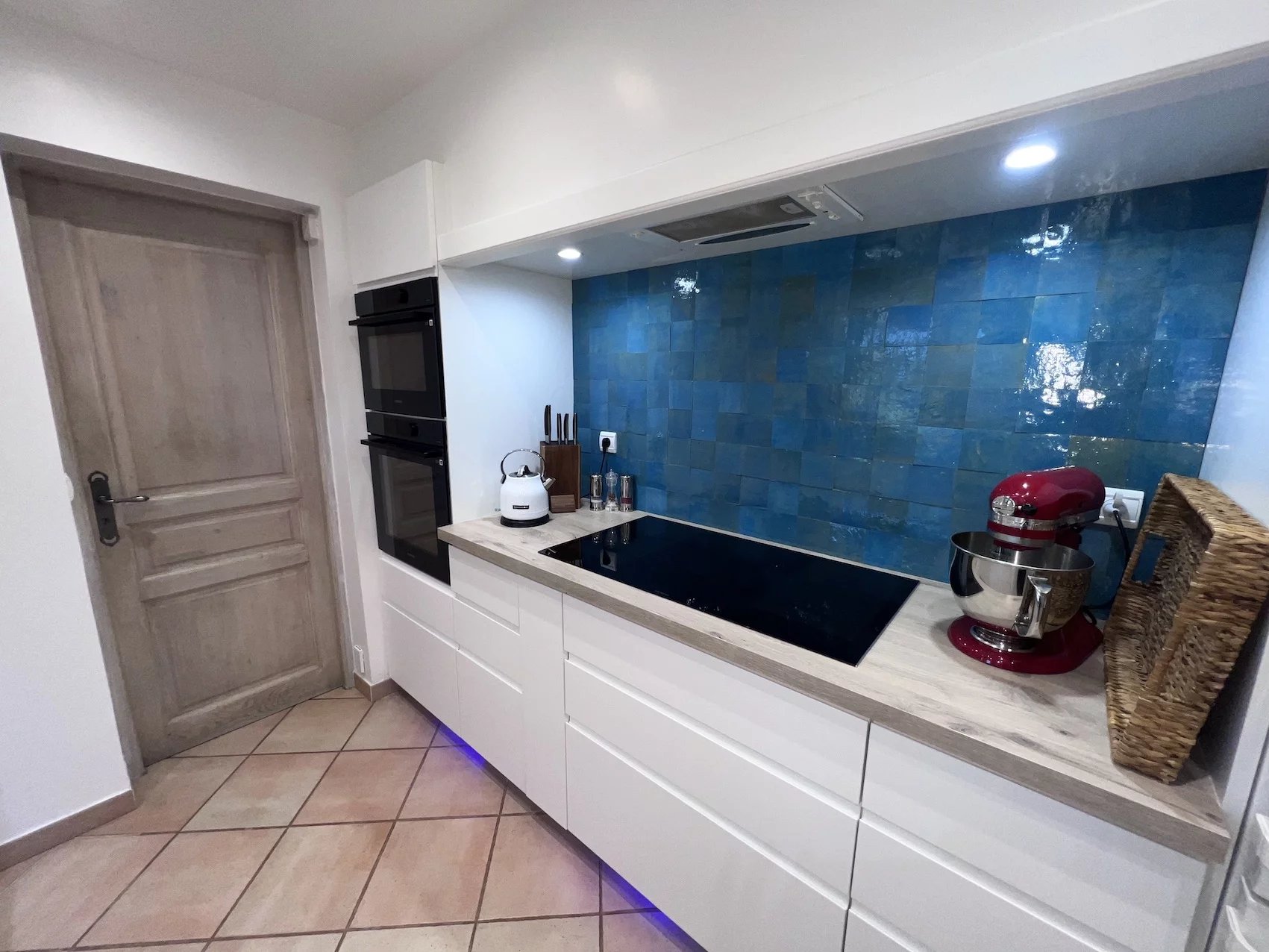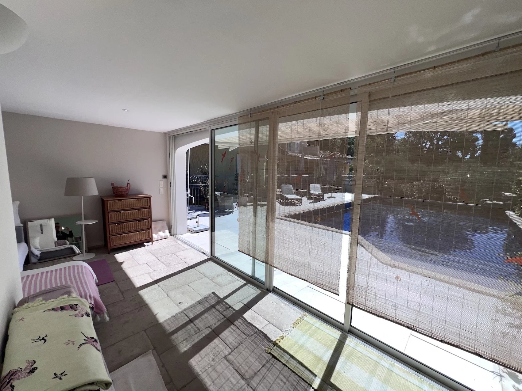 Set on 2,710 m2 of landscaped, fully enclosed grounds planted with olive trees, the villa offers around 200 m2 of living space, enhanced by independent studios, two garages, a workshop, and numerous shaded terraces designed for relaxation and convivial moments.
