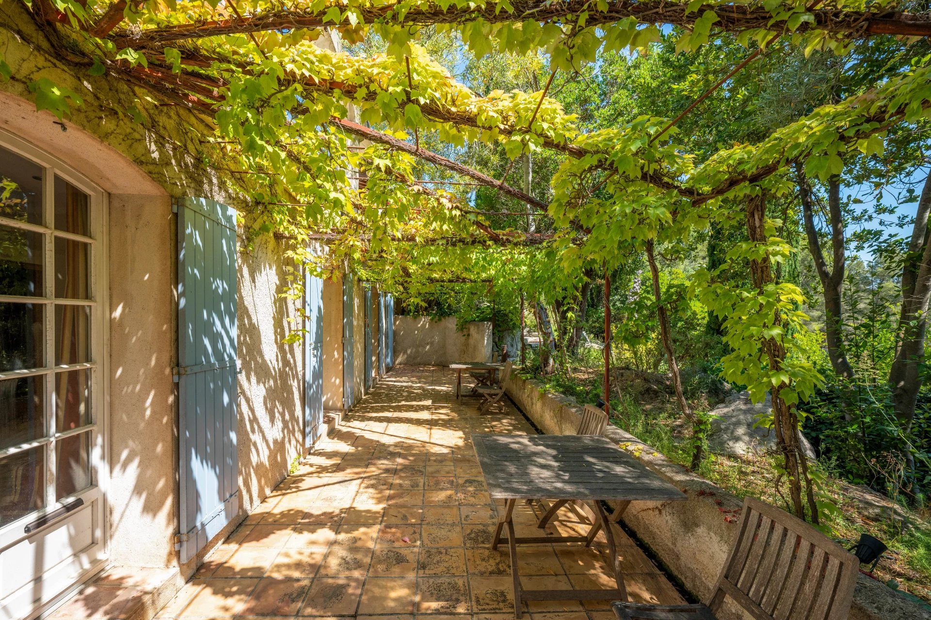 The entire property benefits from multiple landscaped outdoor spaces, including a petanque court, ample parking, and unobstructed views of the surrounding natural landscapes.