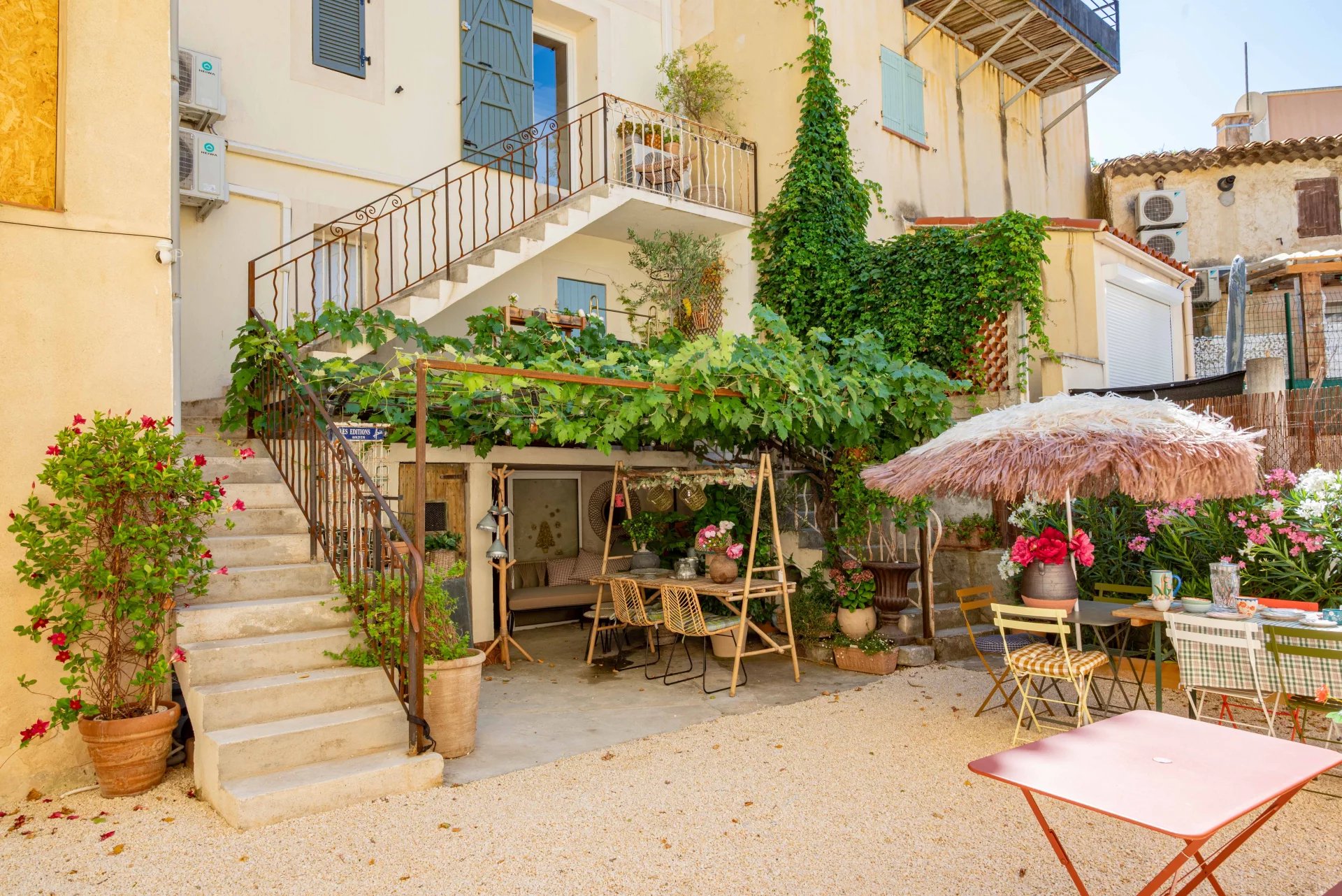 Magnificent opportunity to acquire the walls of a character building located in the heart of the village center of Saint-Cyr-Sur-Mer, offering an interior courtyard, vaulted cellar and atypical apartment with Tropezienne terrace.
