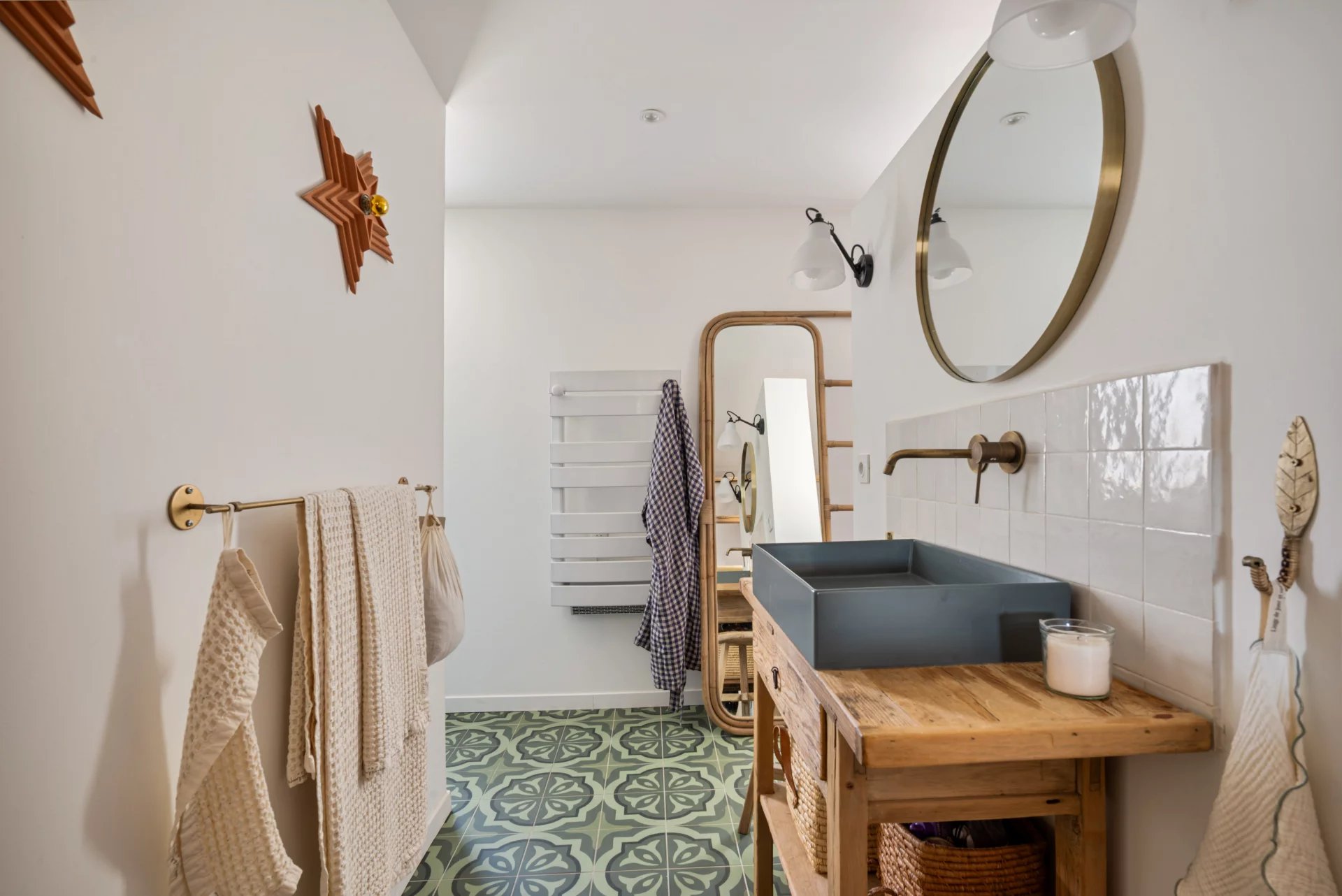 An extension carried out in 2022 by the “Maitresse des Lieux” enabled the building to be raised and a 95m2 apartment to be created on the top 2 levels, in keeping with the existing structure. It features a beautiful open-plan kitchen/living/dining room. A luminous bedroom with en-suite shower room, separate toilet, an additional bedroom, a roof terrace overlooking the main square of Saint-Cyr sur mer and the church tower.