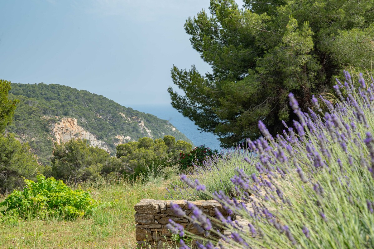 Sheltered from the mistral winds, and you can walk down a gentle slope to the sea, with the creeks of Port d’Alon just a short stroll away. Several hectares of classified nature.