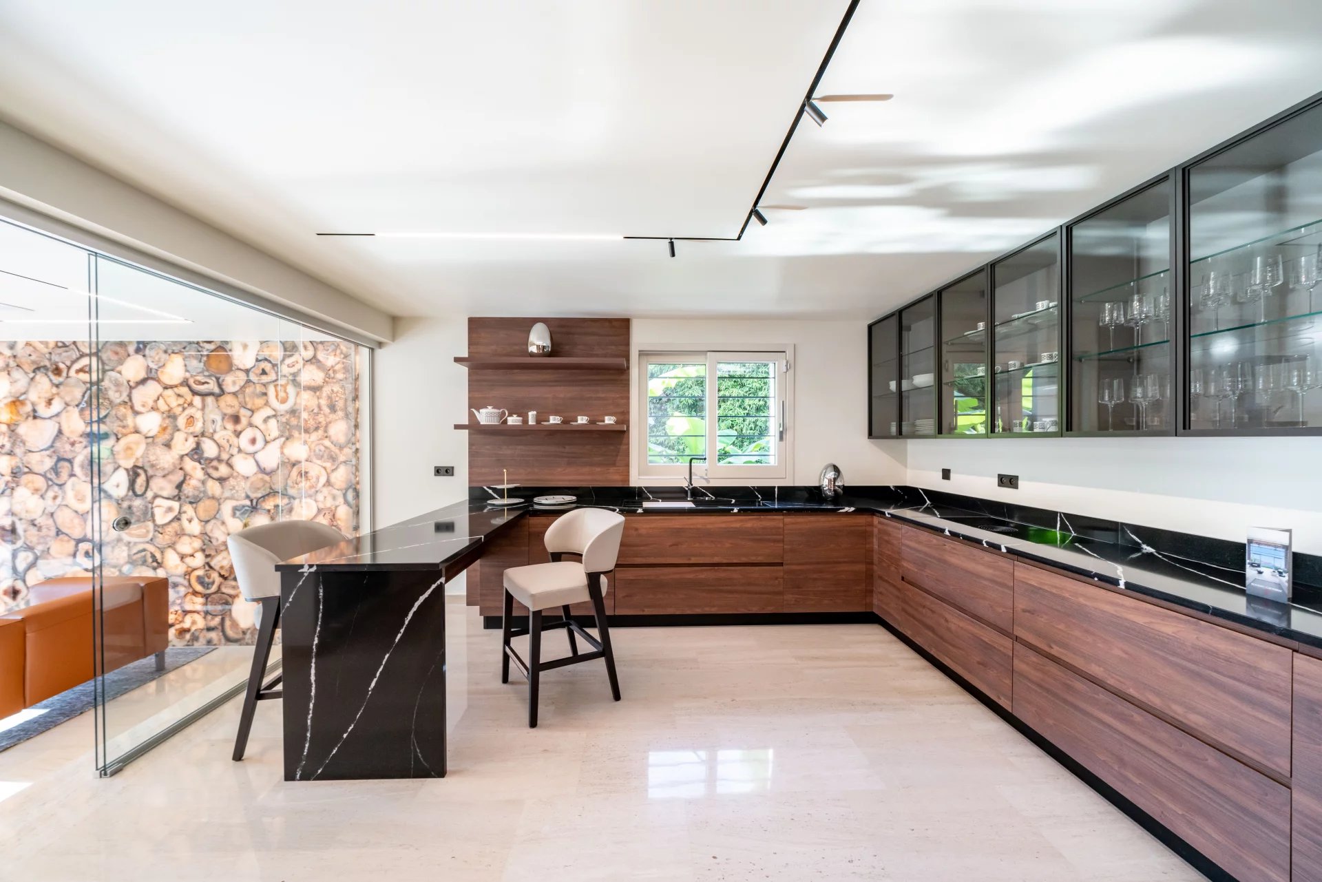 4 bedrooms each with its own bathroom (or shower), an independent studio apartment, a laundry room, gym, sauna and a wine cellar. Large garage for 3 cars.