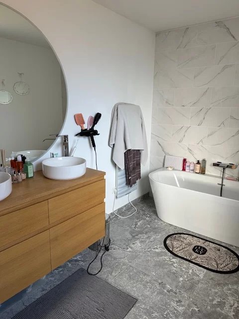 It is composed, at the ground floor by an entrance hall, a laundry room, a separate WC, a master suite, and a very large opened living area encompassing a lounge, dining area, and a spacious kitchen opened onto a south-facing terrace. Upstairs, there is a master suite, two bedrooms, and a shower room with WC.