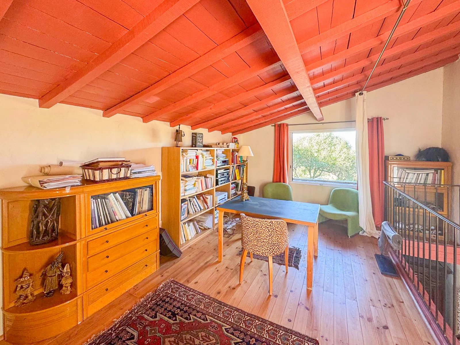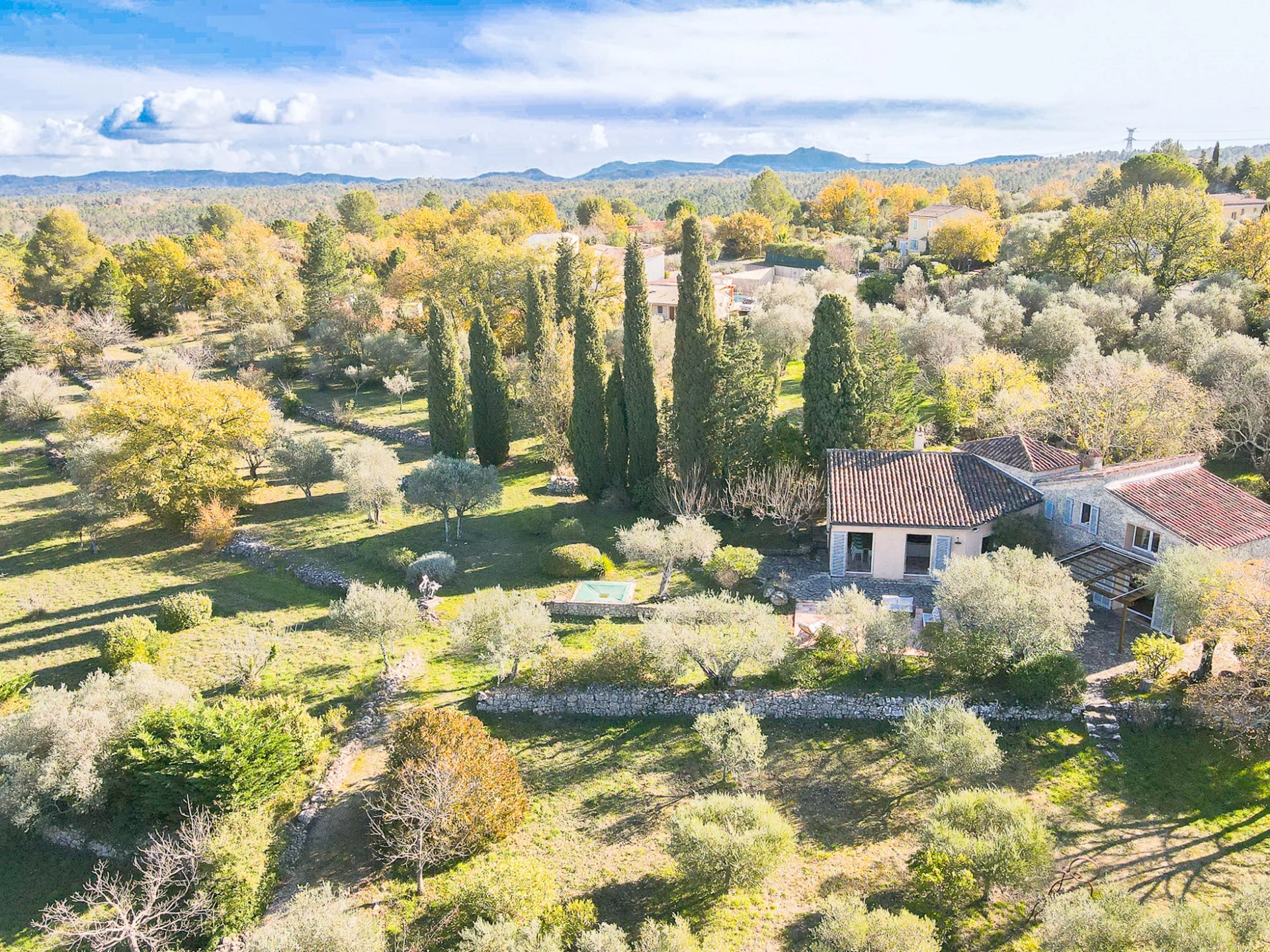Situated in a lush green setting, just 400 metres from the village, this former stone bergerie stands on over one hectare of flat land, offering beautiful views over the surrounding hills and a garden planted with olive trees, pink oleanders and cypress trees.