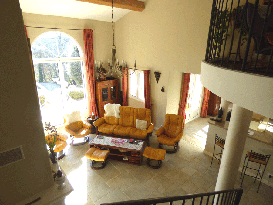 Accommodation, entrance hall, powder room, access to a double garage, cellar, boiler room, living room with fireplace, fitted American kitchen opening onto a pergola terrace, laundry room with access to a covered terrace, dining room.