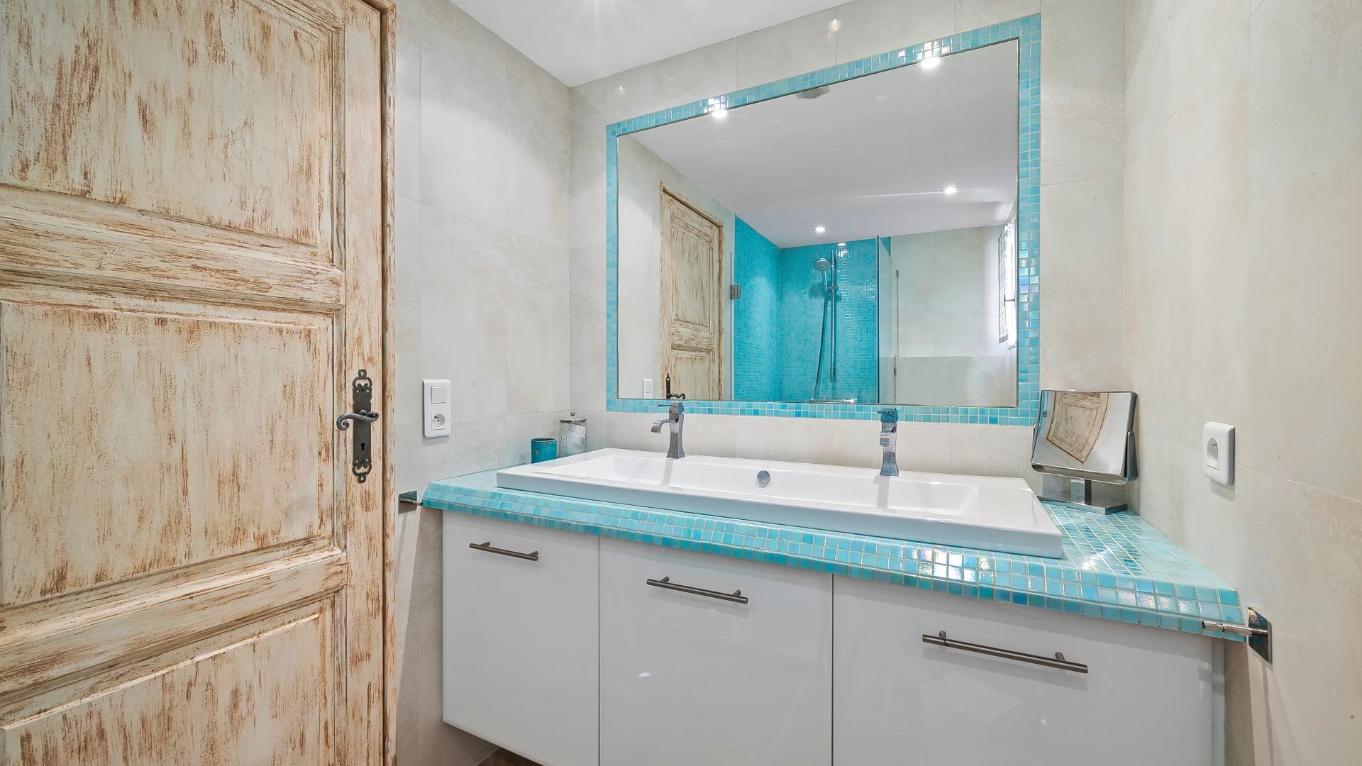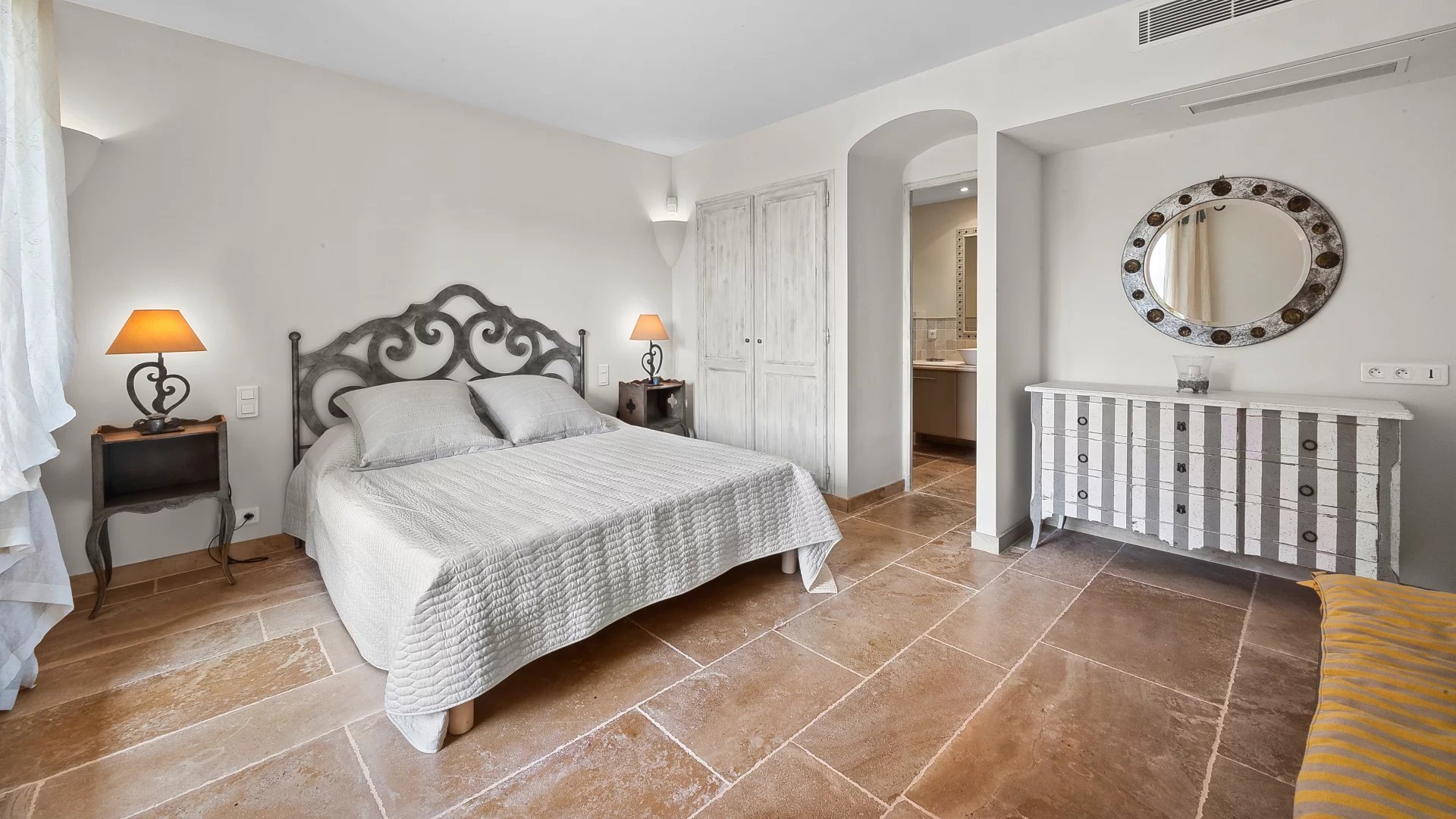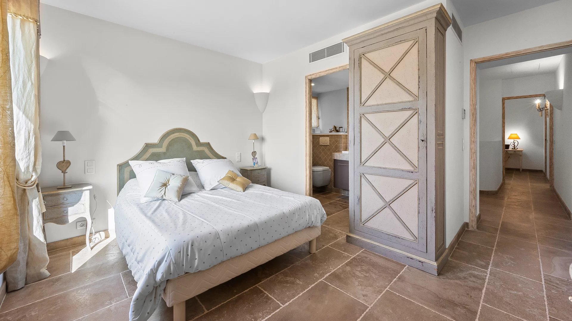 This level also offers a study, followed by a generous en-suite bedroom with its bathroom and toilet, opening directly onto the garden and the pool.
