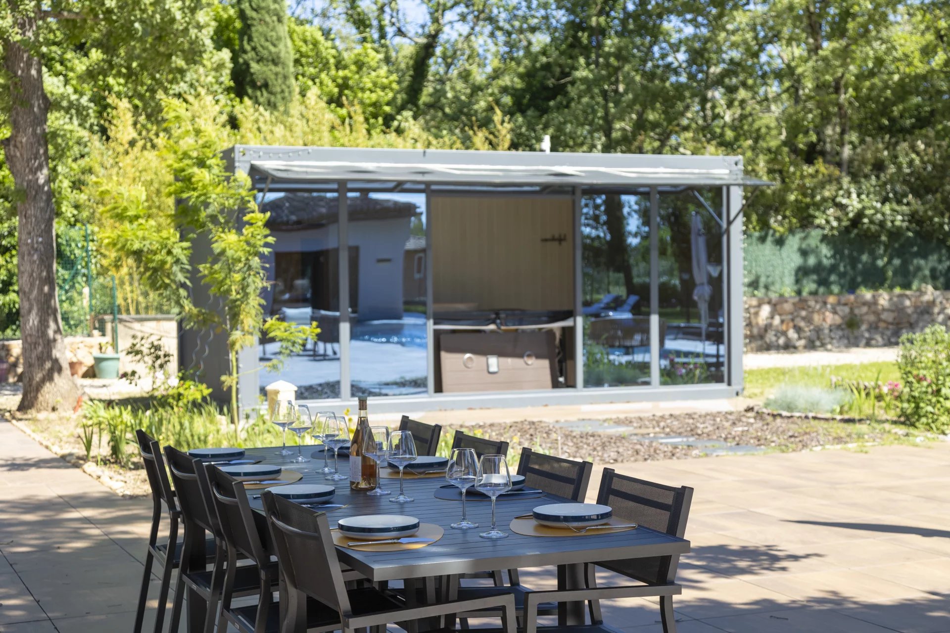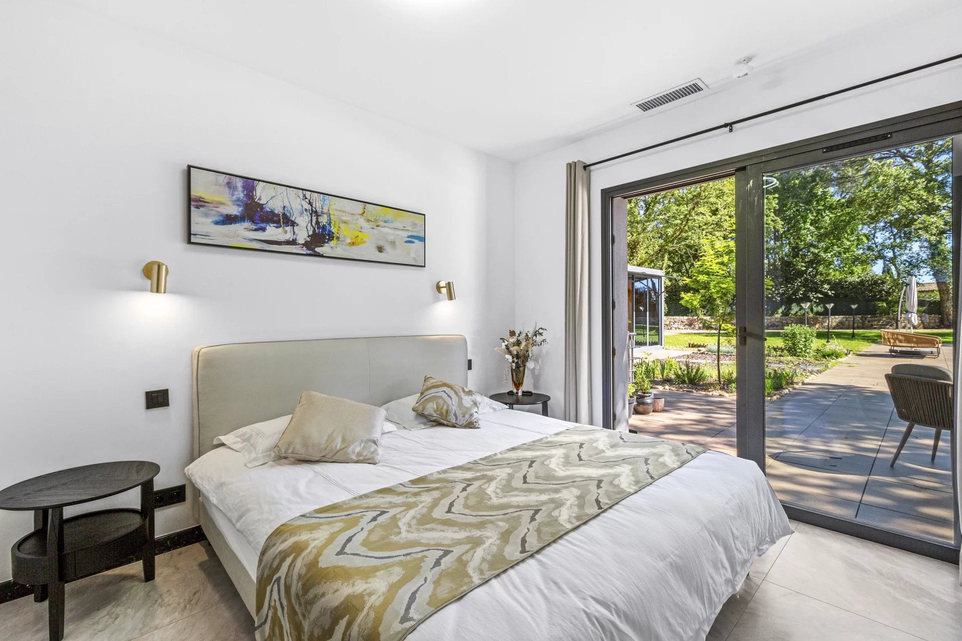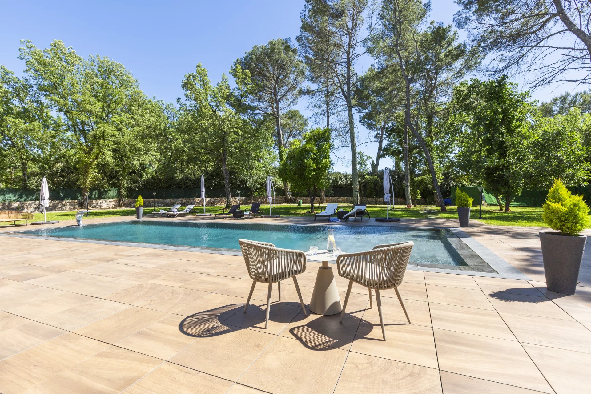 Located in a sought-after residential area, just steps from the prestigious Golf of Terre Blanche, this architect-designed contemporary villa, completed in 2023, embodies modern elegance in the heart of the Provencal countryside.