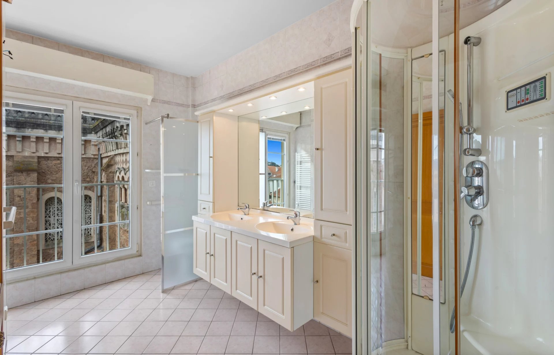 A rare location within walking distance of everything, with a fabulous sea view sweeping across the harbour, the town with its old church and as far as the Roquebrune rock.