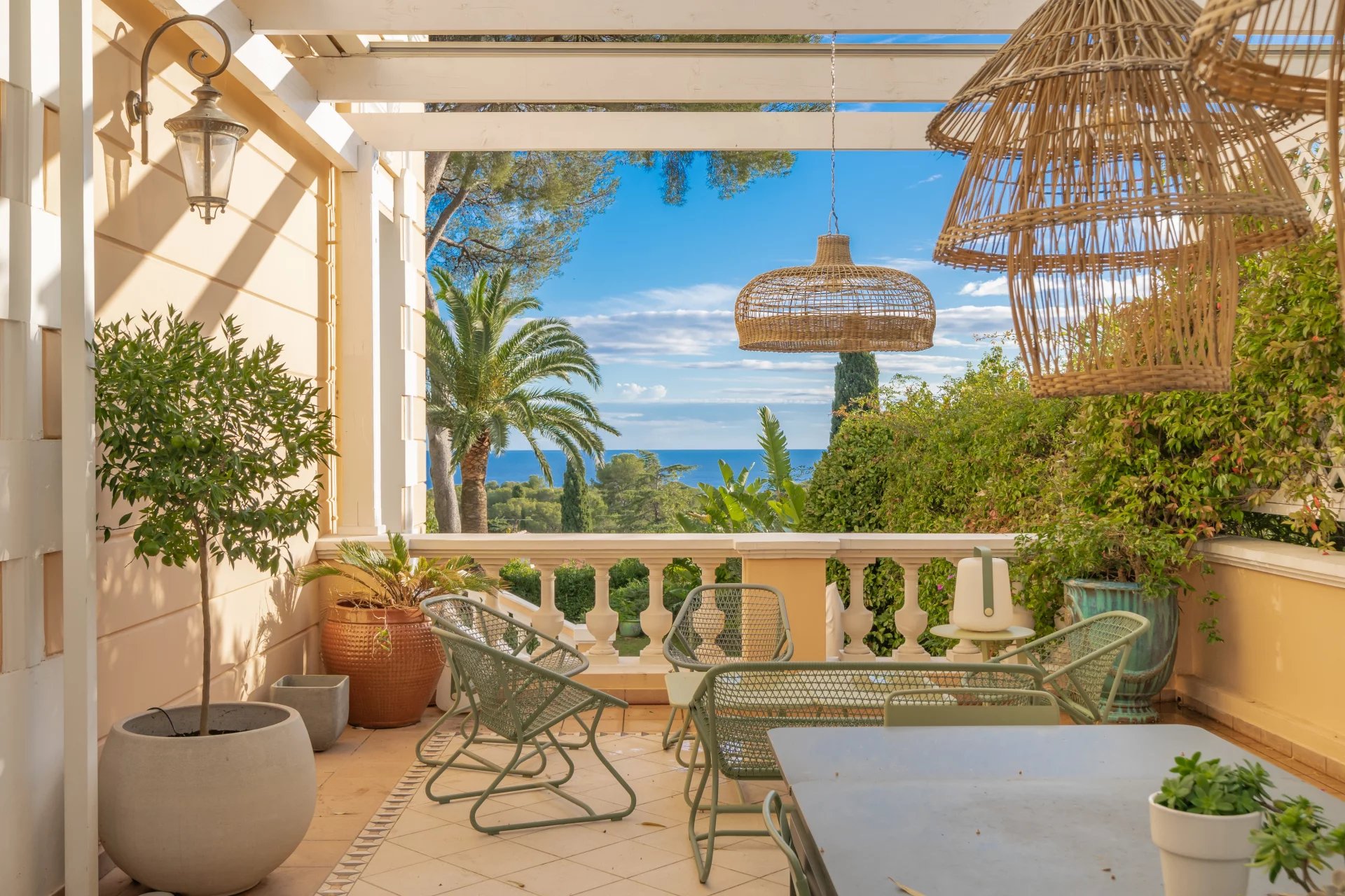 Boulouris: duplex 4 bedroom apartment in excellent condition offering a splendid view all the way to the sea, close to the sea and shops, between Cannes and Saint-Tropez, in a secure, luxury Belle Epoque residence.