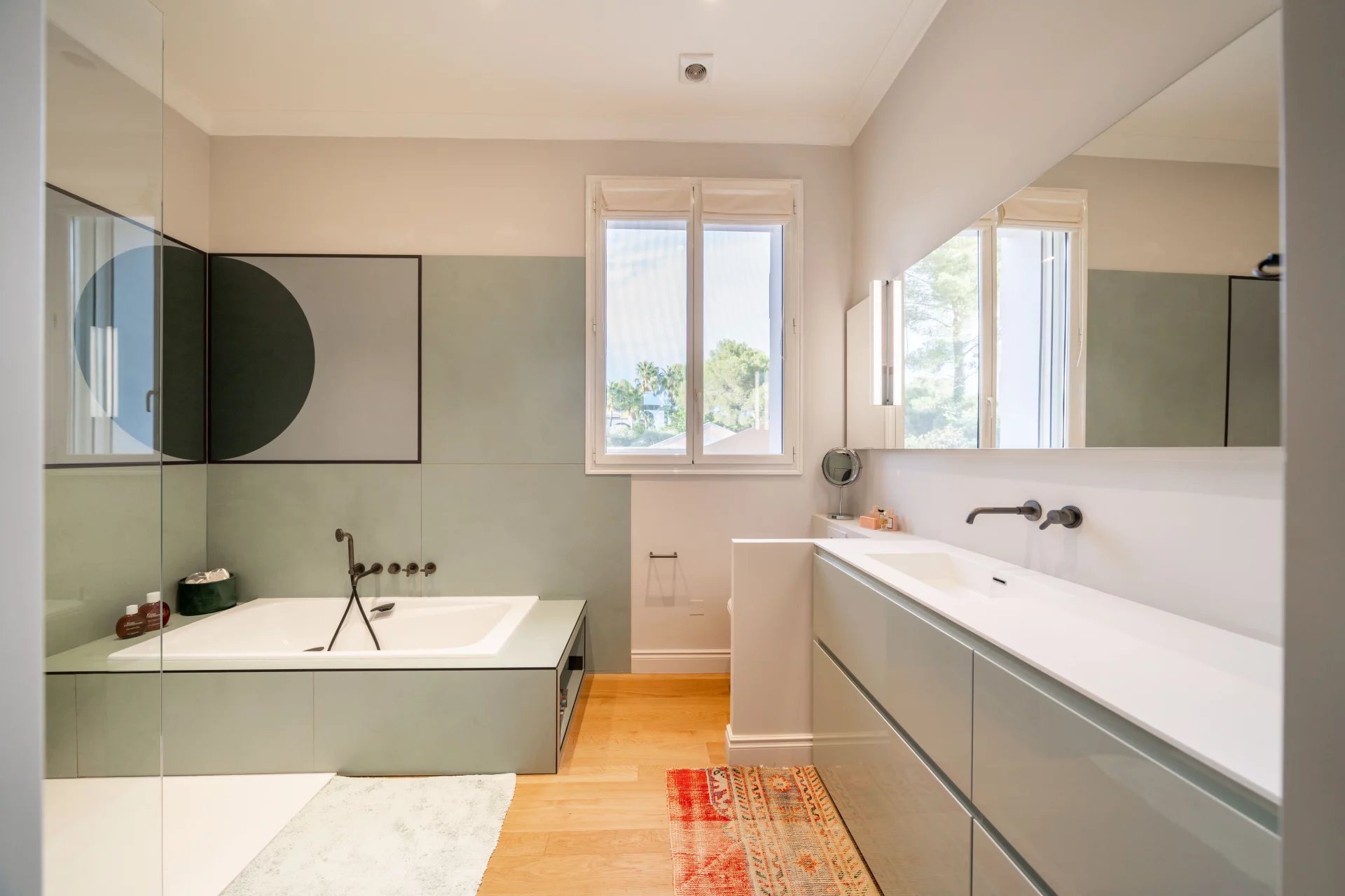 In addition to the private garden of approximately 900 m2 and two garages, the residence offers an 8,000 m2 park in a commanding position, guaranteeing absolute tranquillity in a particularly well-preserved environment, with a large 18 m swimming pool and pool house.