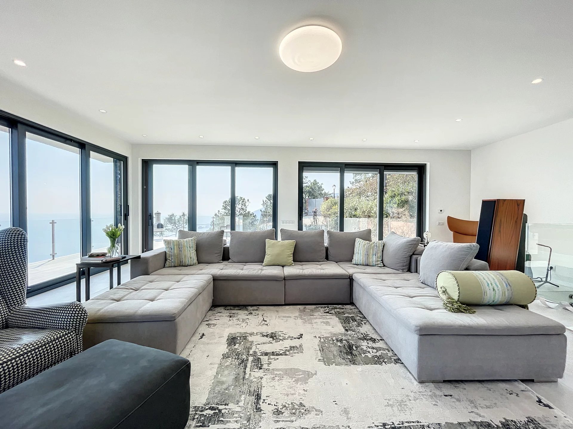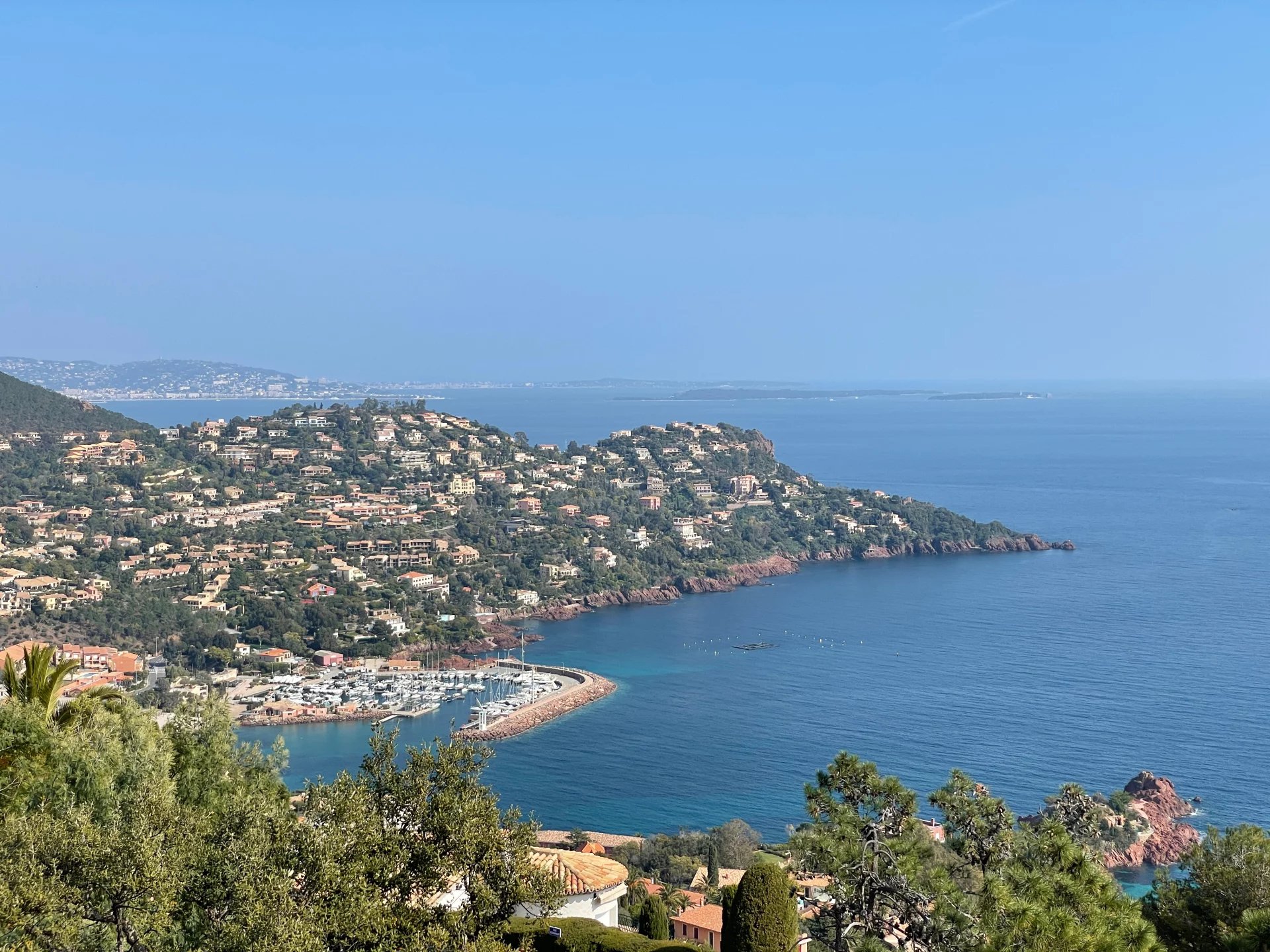 In a secured domain nestled in the Estérel mountains, only 2 minutes away from beaches and 10 minutes away from the village of Theoule-sur-Mer, lovely villa with pool renovated in a contemporary style and enjoying a breathtaking sea view over the Cannes Bay and the islands.
