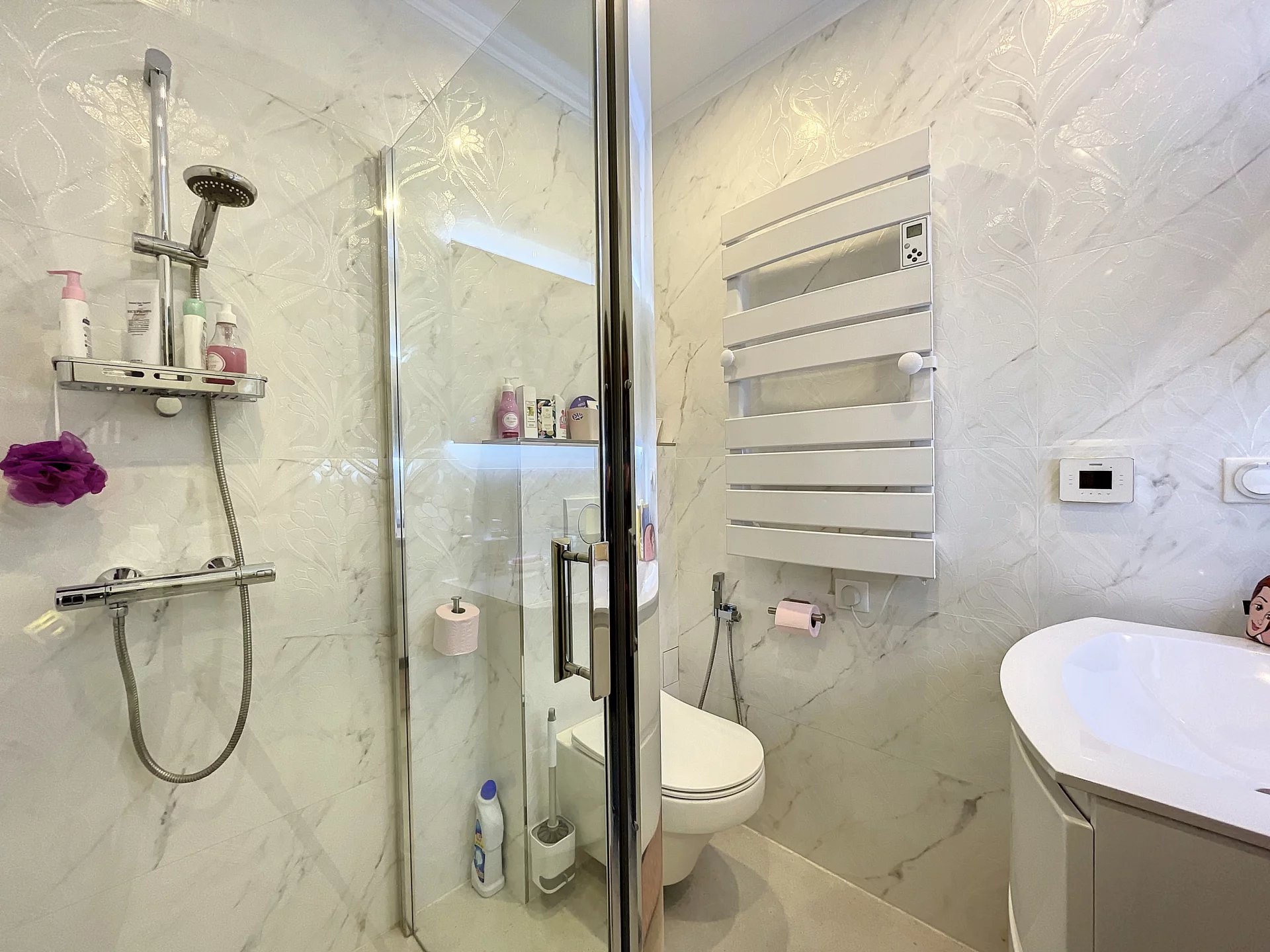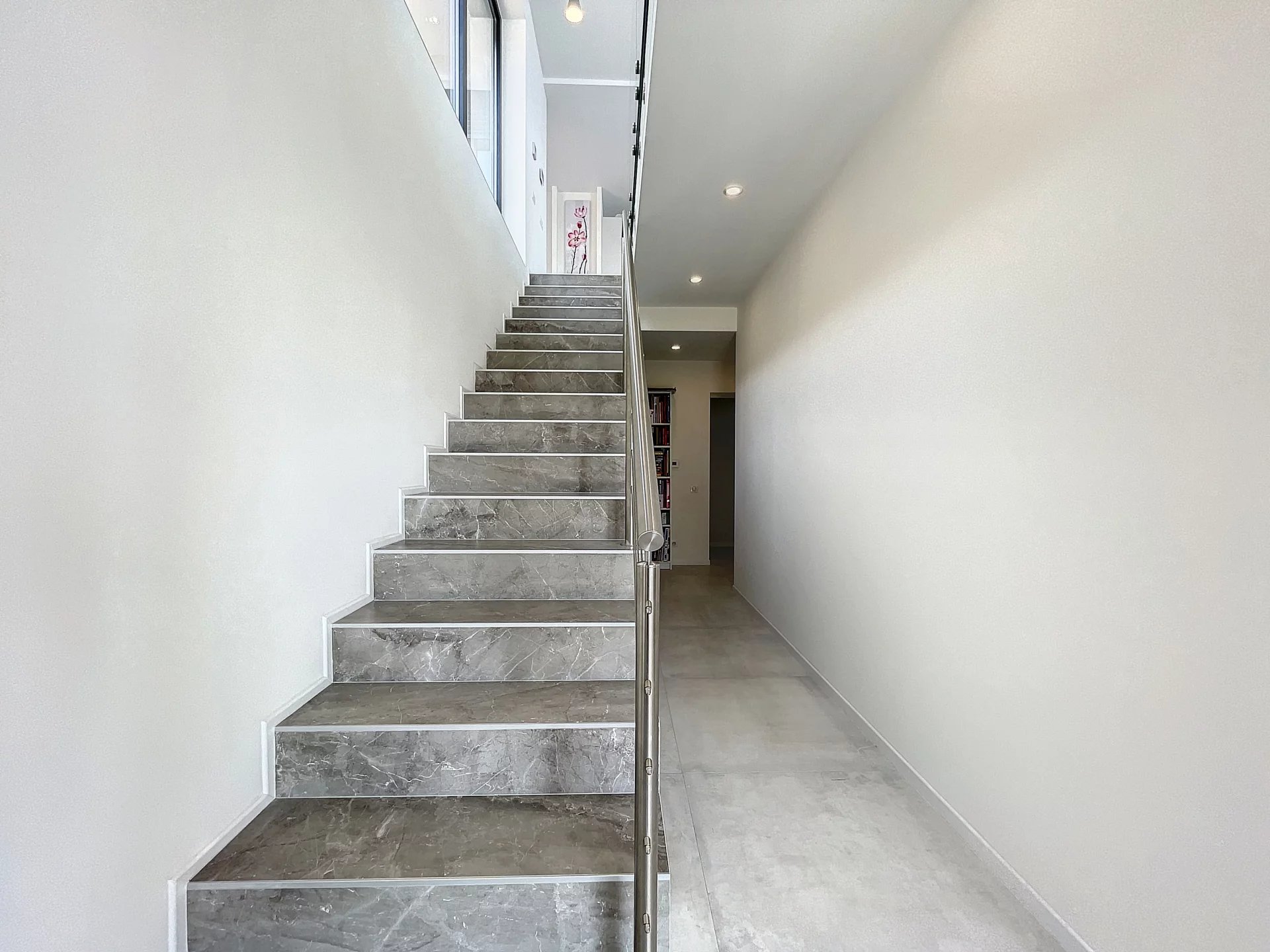 The garden floor comprises 3 en-suite bedrooms with their own shower room, within a master bedrooms with bath and dressing. All the bedrooms open onto terraces leading to the pool area. The floor comprises as well an independent toilet, a wine cellar and a laundry room.