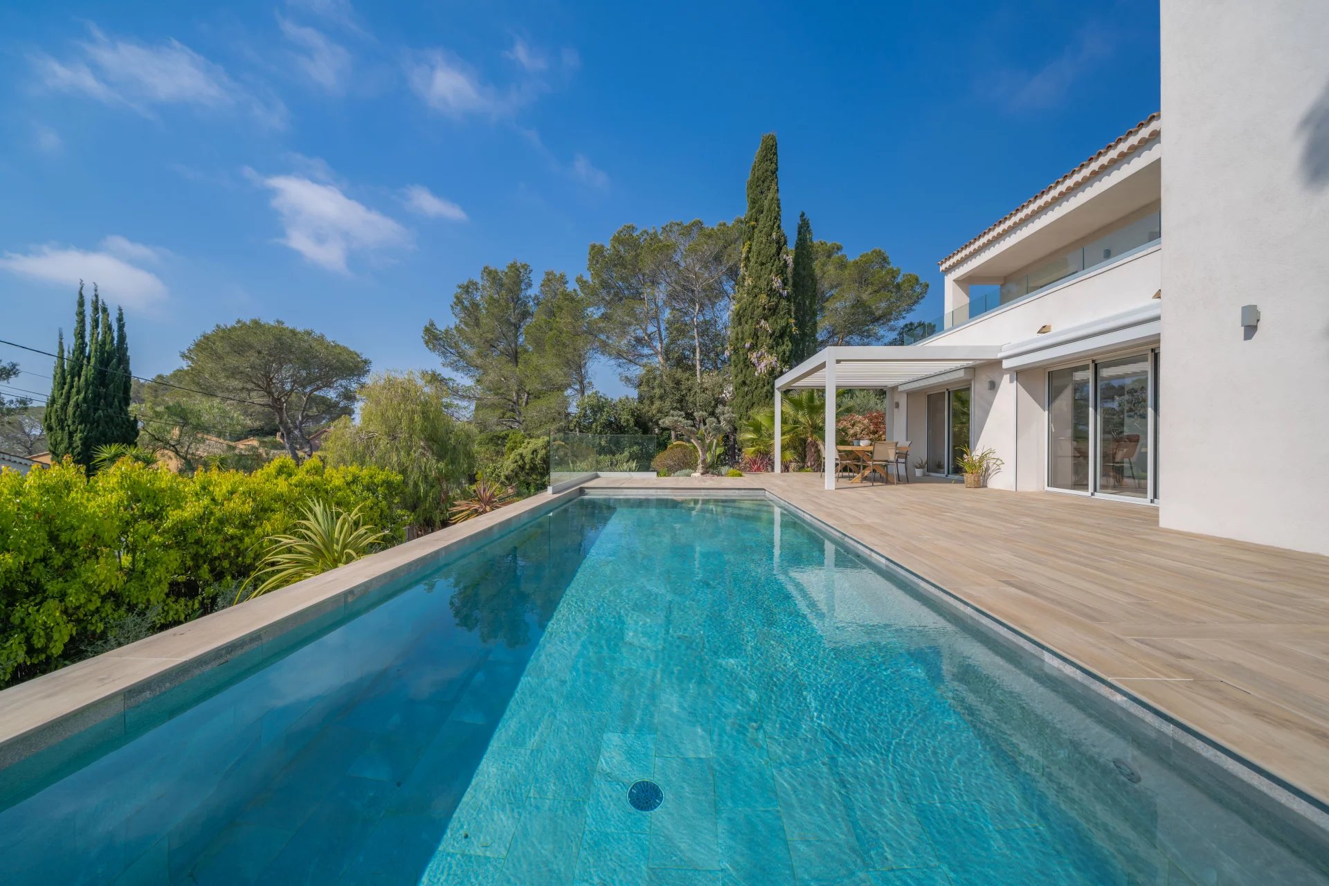 Come and discover this stunning villa at the end of a dead-end street in an elevated position offering nice views all the way down to the sea, with a floor area of approximately 220 m2 featuring 4/5 bedrooms, one of which is on a single level, and fully renovated in 2025.