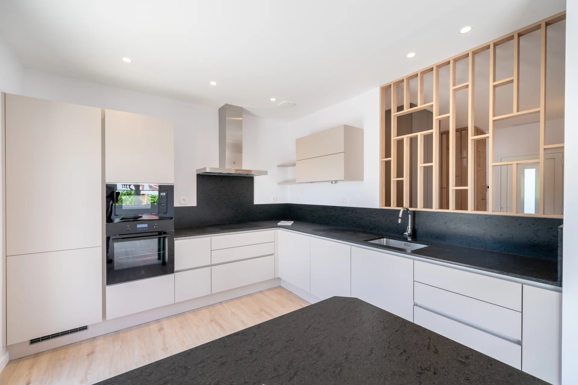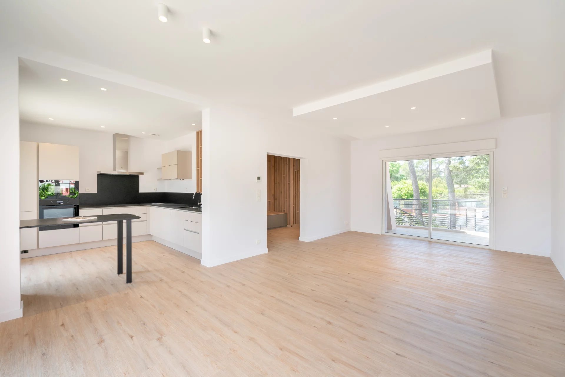 With a total floor area of around 190 m2, the living rooms on the first floor open onto two large terraces. Entrance hall, fitted kitchen opening onto a through living room, bedroom, shower room and bedroom/ study.