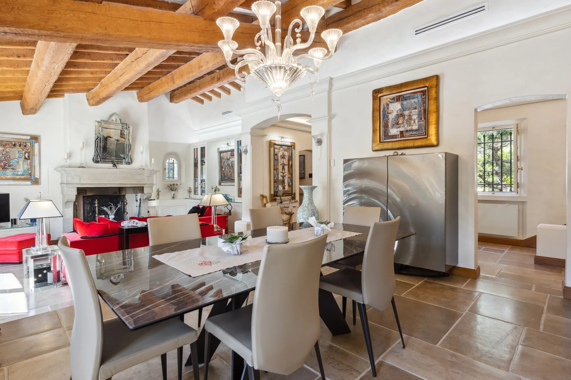 Located within a secure, gated estate and completely out of sight, this rare property offers a truly unique lifestyle. Ideally facing south, it sits on a beautifully landscaped, perfectly flat plot of approximately 2,810 m2, adorned with nearly 100 palm trees and featuring a large heated swimming pool.