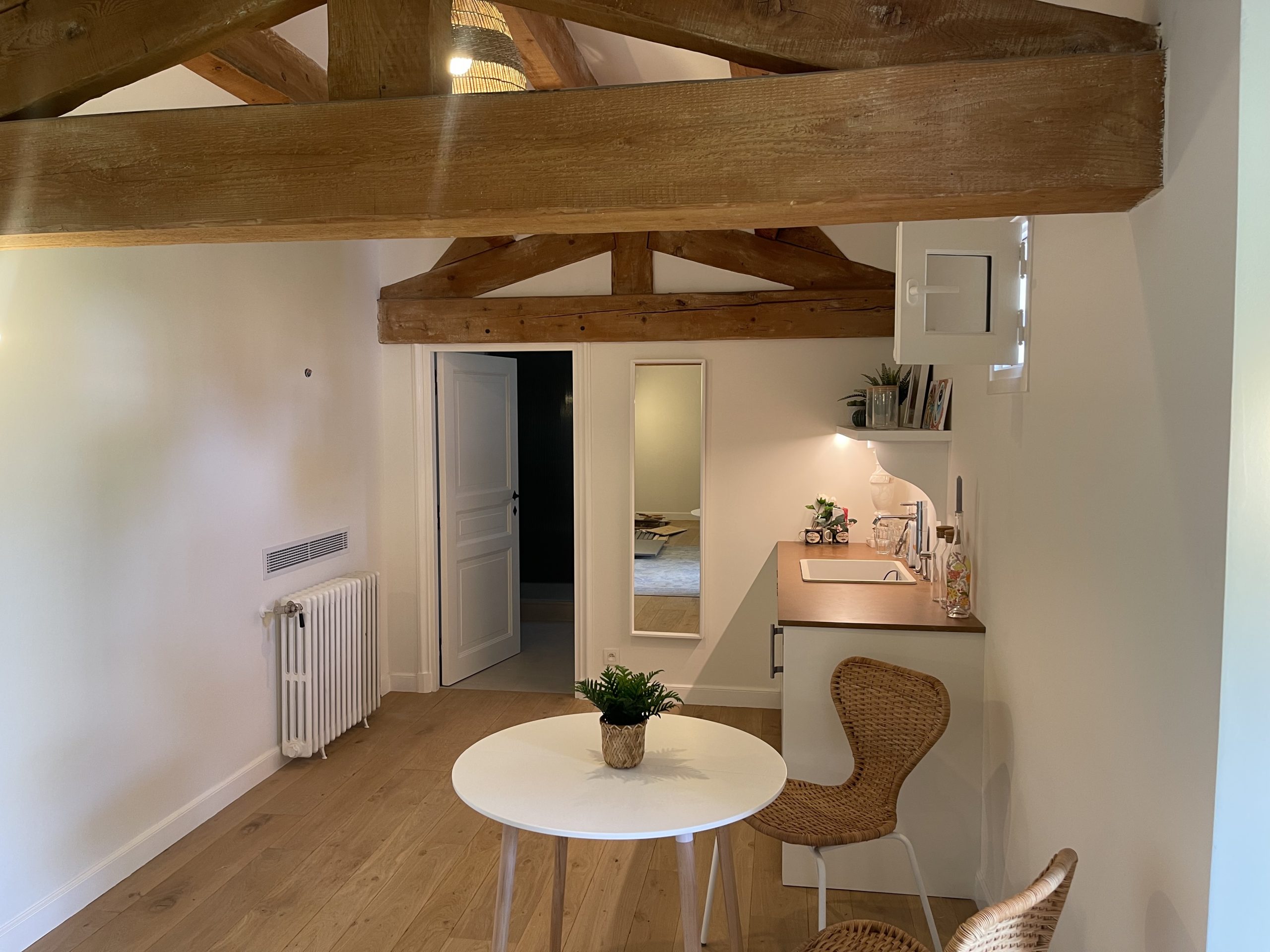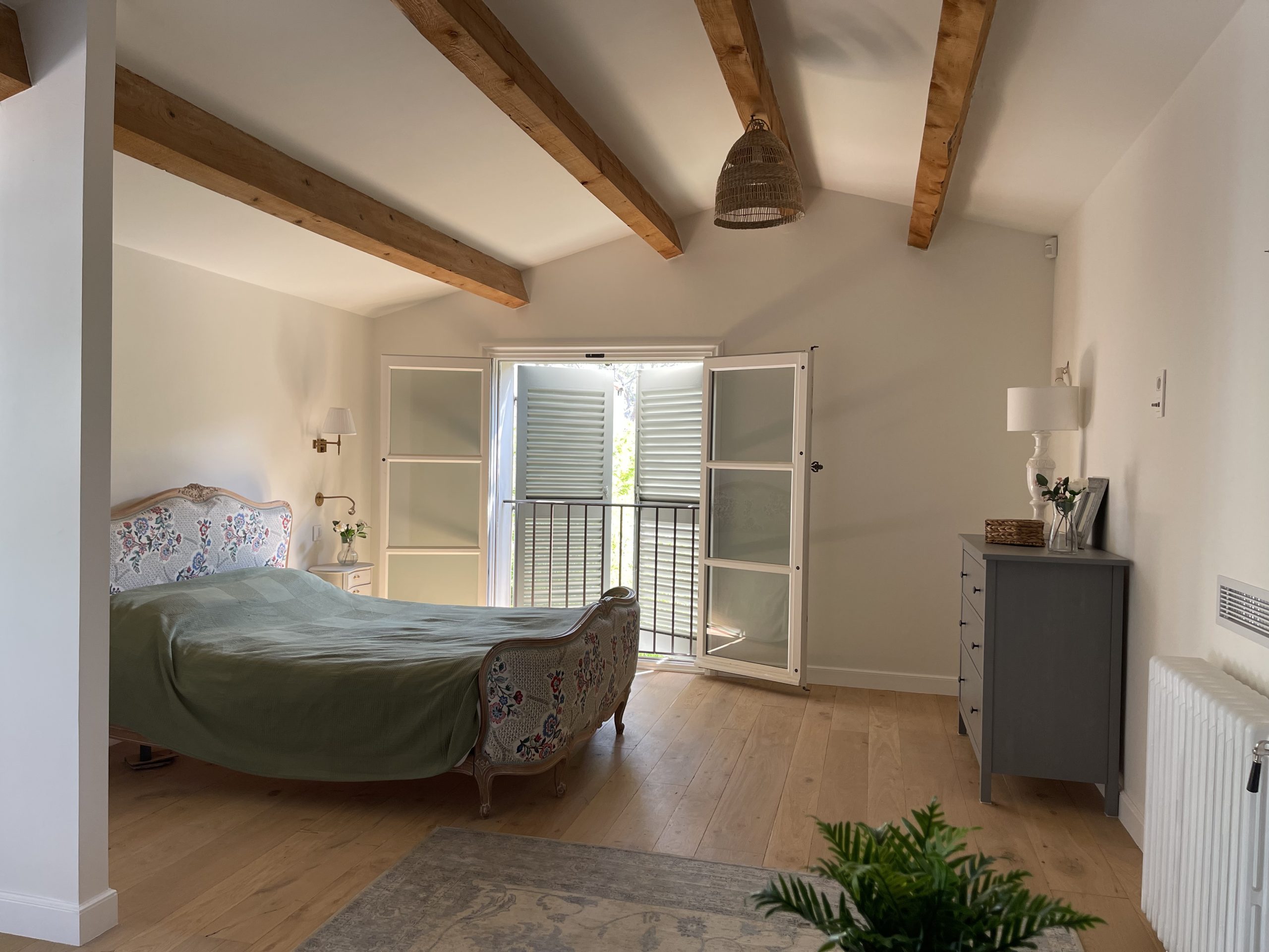 On the first floor there is an independent guest apartment, also newly renovated with more than 30m2 of space and its own kitchen and shower room, with windows opening out over the gardens.
