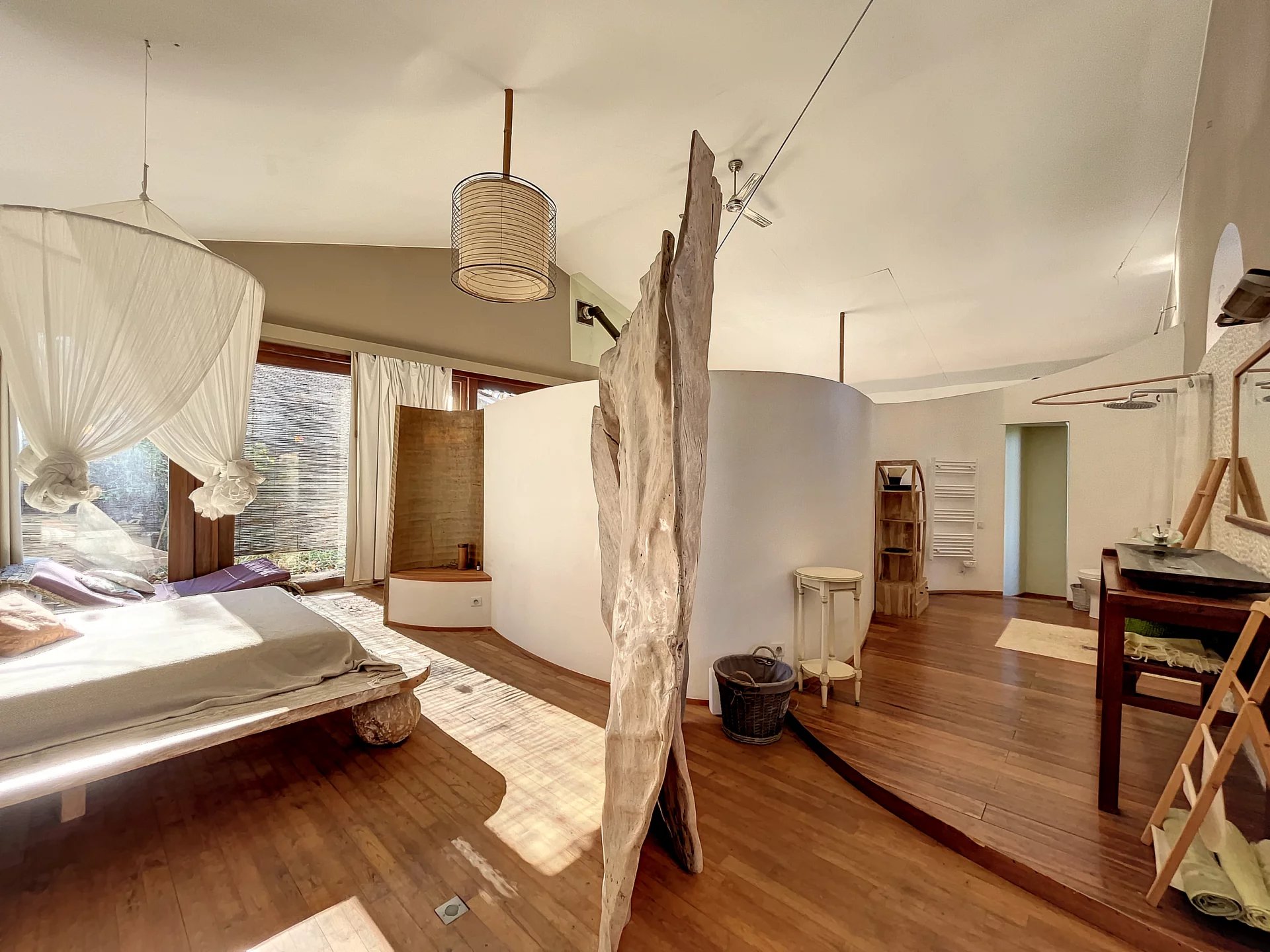 – An exceptional space of around 1,000 m2, divided into several areas to be arranged as you wish, including offices and 4 apartments: a ground-floor apartment with terrace and garden, a first-floor loft with hanging garden, and two 2-room duplex apartments, each with its own private terrace. A terrace shaded by magnificent century-old plane trees and a covered terrace, inviting you to relax.