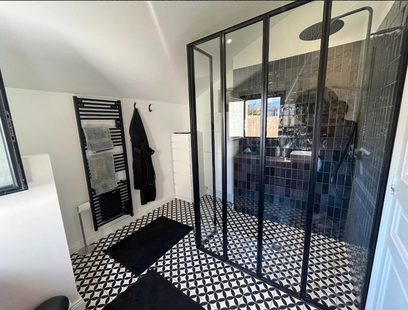 Outside, a saltwater heated swimming pool (8 × 3 m), secured by a roller shutter, is accompanied by a convivial terrace and private parking spaces.
