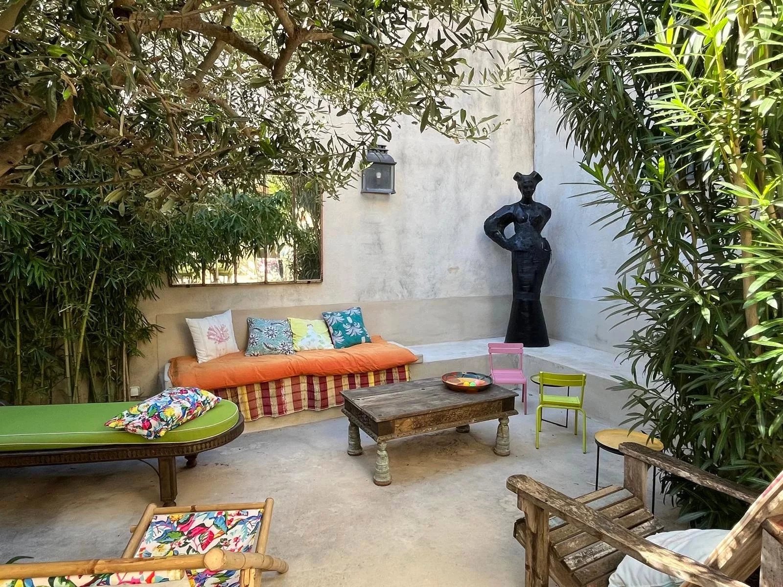 The ground floor features a living area comprising a lounge, dining room and fully equipped kitchen, opening directly onto this outdoor space, the true heart of the house.