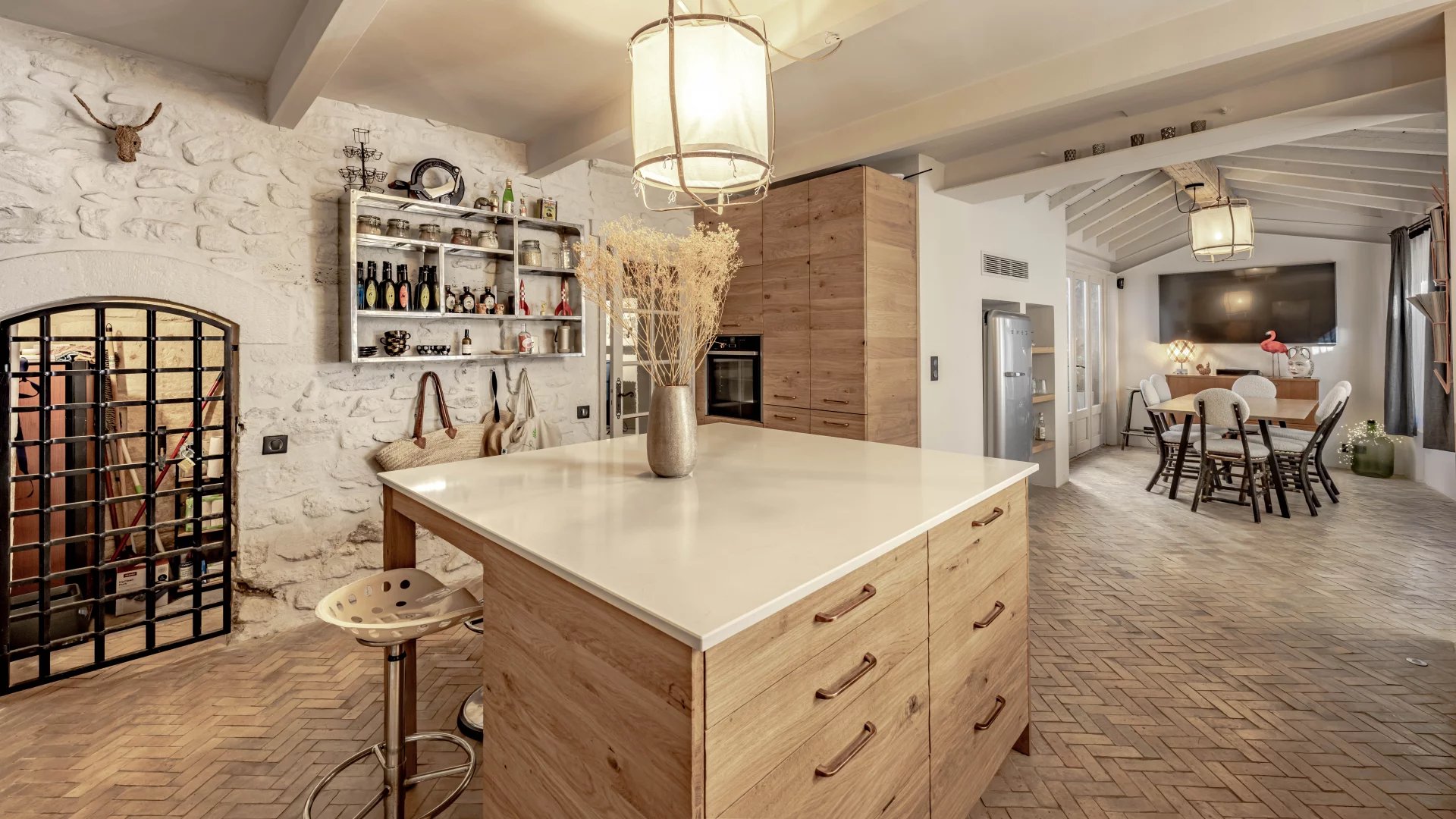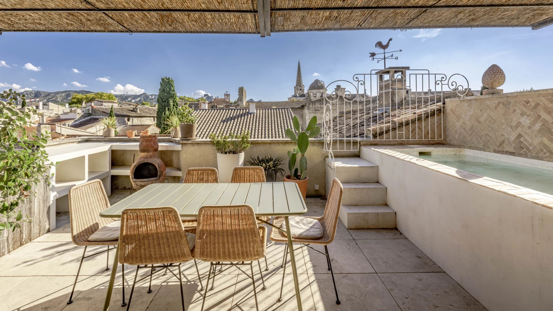 Set within the ramparts of Saint-Remy-de-Provence, this period stone town house enjoys a prime location and wonderful views over the rooftops, the bell tower and the Alpilles.