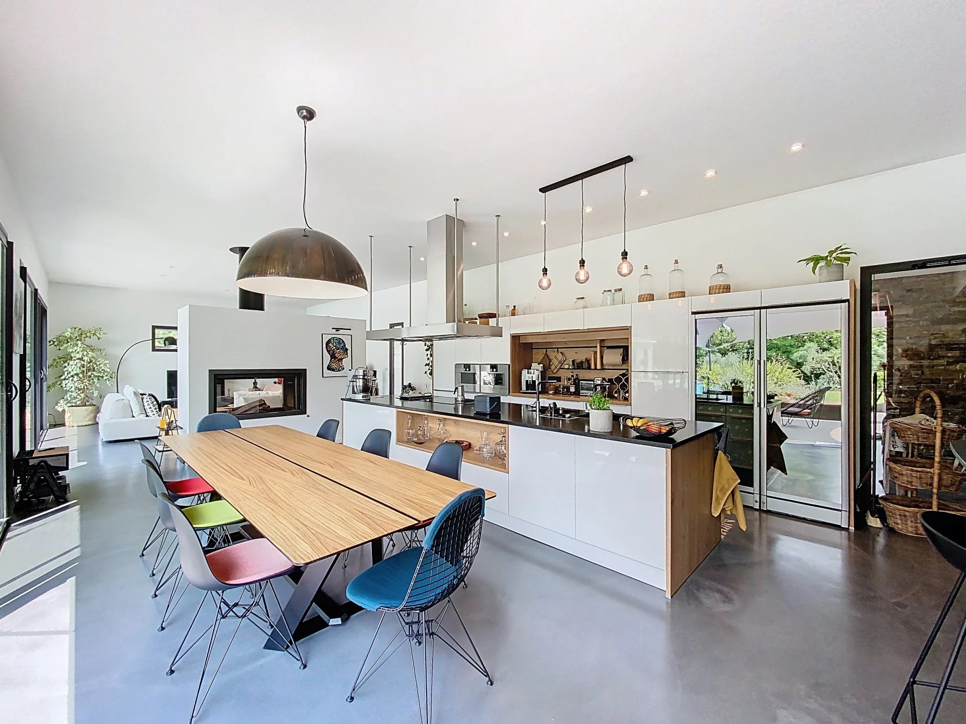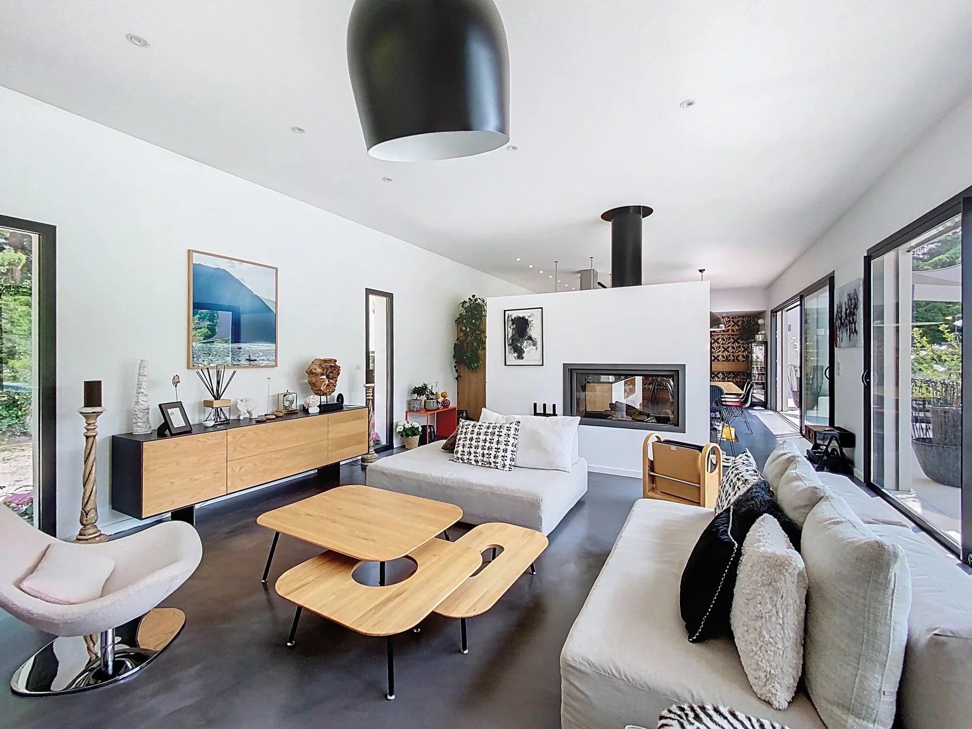Just 5 minutes from the town centre, this contemporary house, built in 2017, offers a rare living environment combining modern comforts, top-of-the-range features and unspoilt countryside. With a floor area of 260 m2, it is set in 3,170 m2 of landscaped grounds with mature trees, offering total privacy and a pleasant feeling of space.