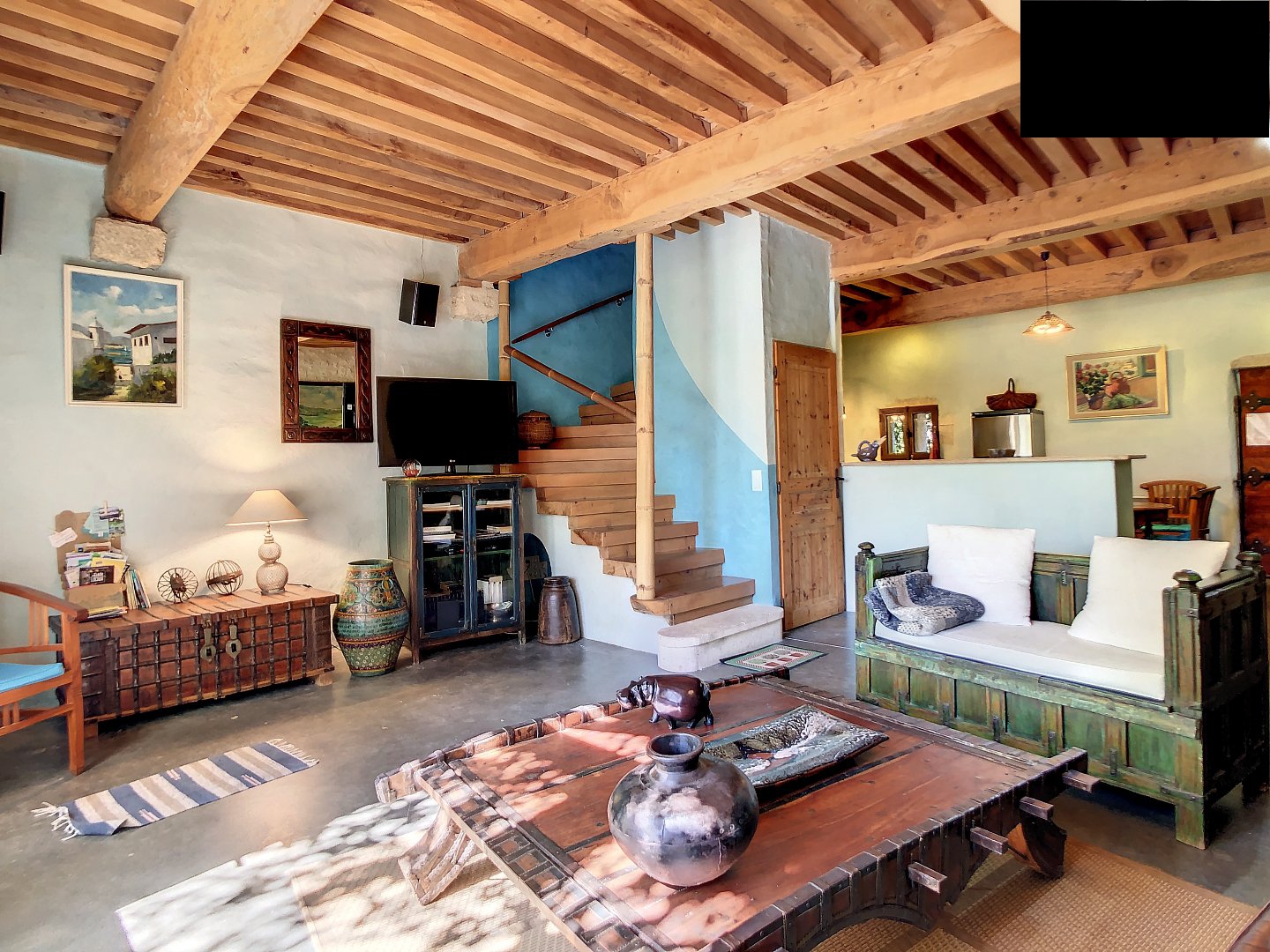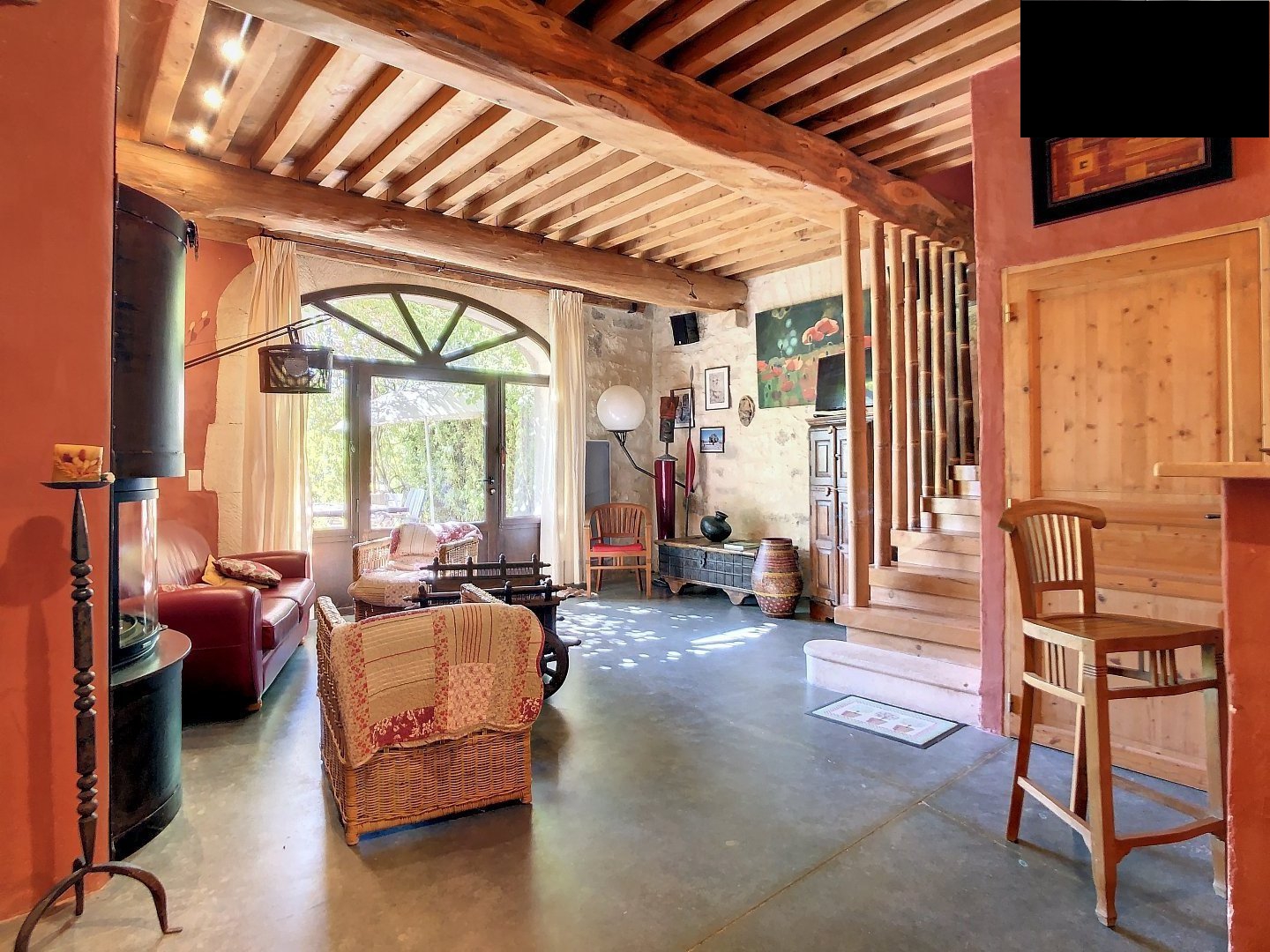 The main part is a stone Mas with development work to be planned to be able to benefit from all of its 270 m2. The pool area is surrounded by lush greenery.