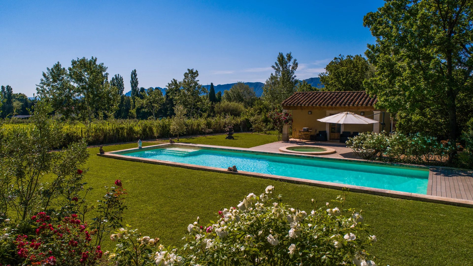 The 3,250 m2 landscaped, enclosed grounds are perfectly maintained. Terraces surround the house, as does a pool house. Both interior and exterior spaces offer unobstructed views of nature and the Alpilles, in a very quiet, unspoilt setting.