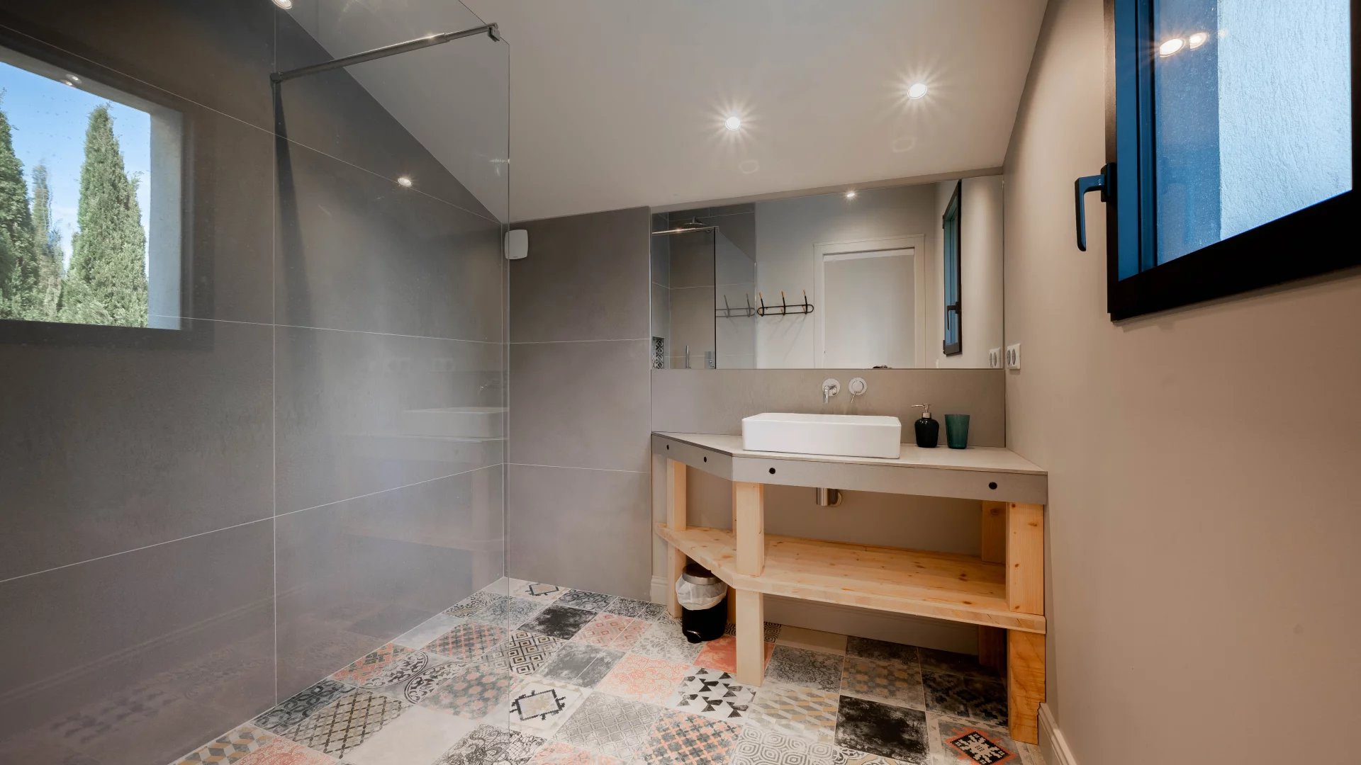 From the generous first floor terrace you have a glorious view of the Alpilles that overlooks the garden and the 11×4.5m heated pool with electric security cover.