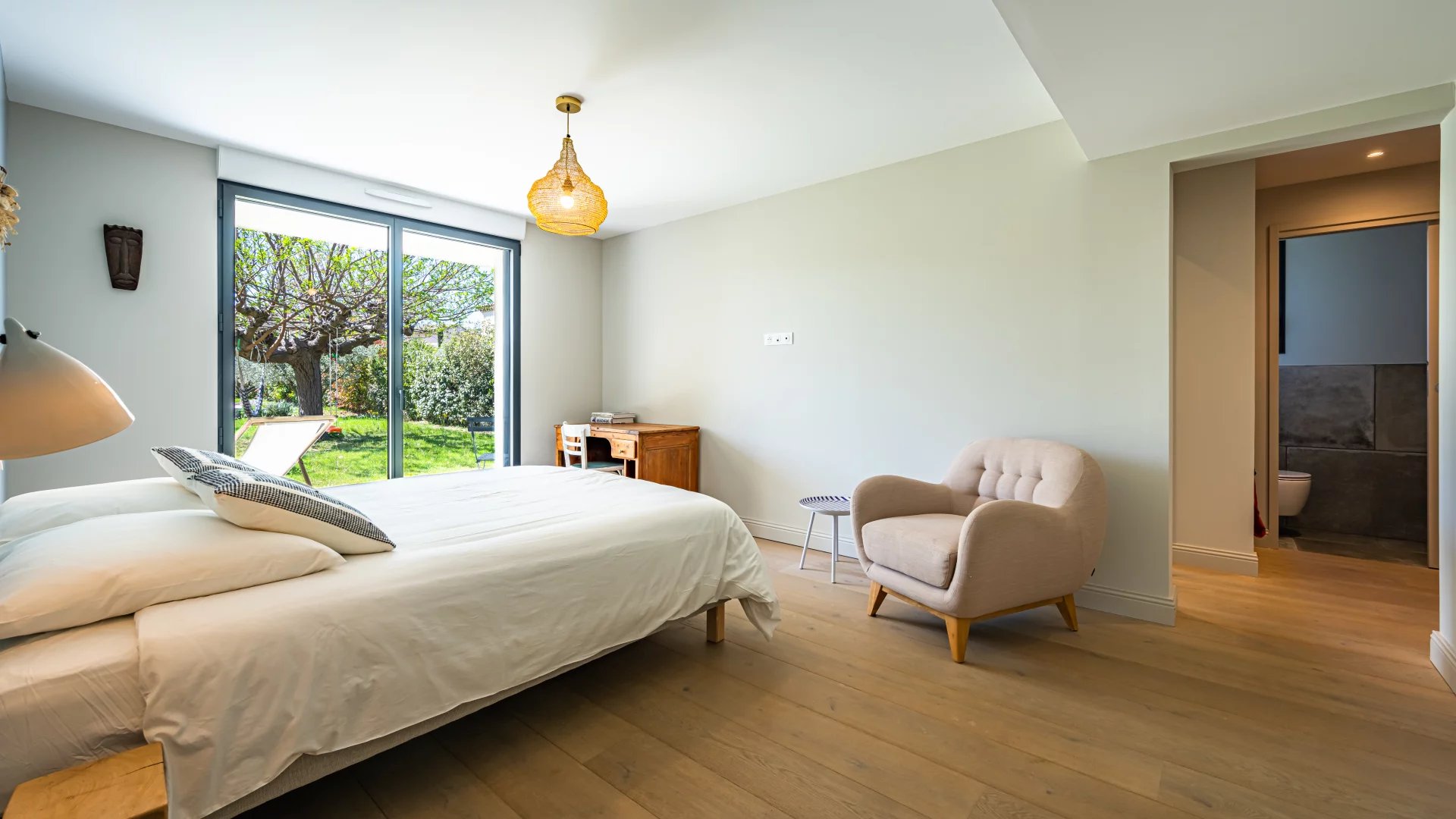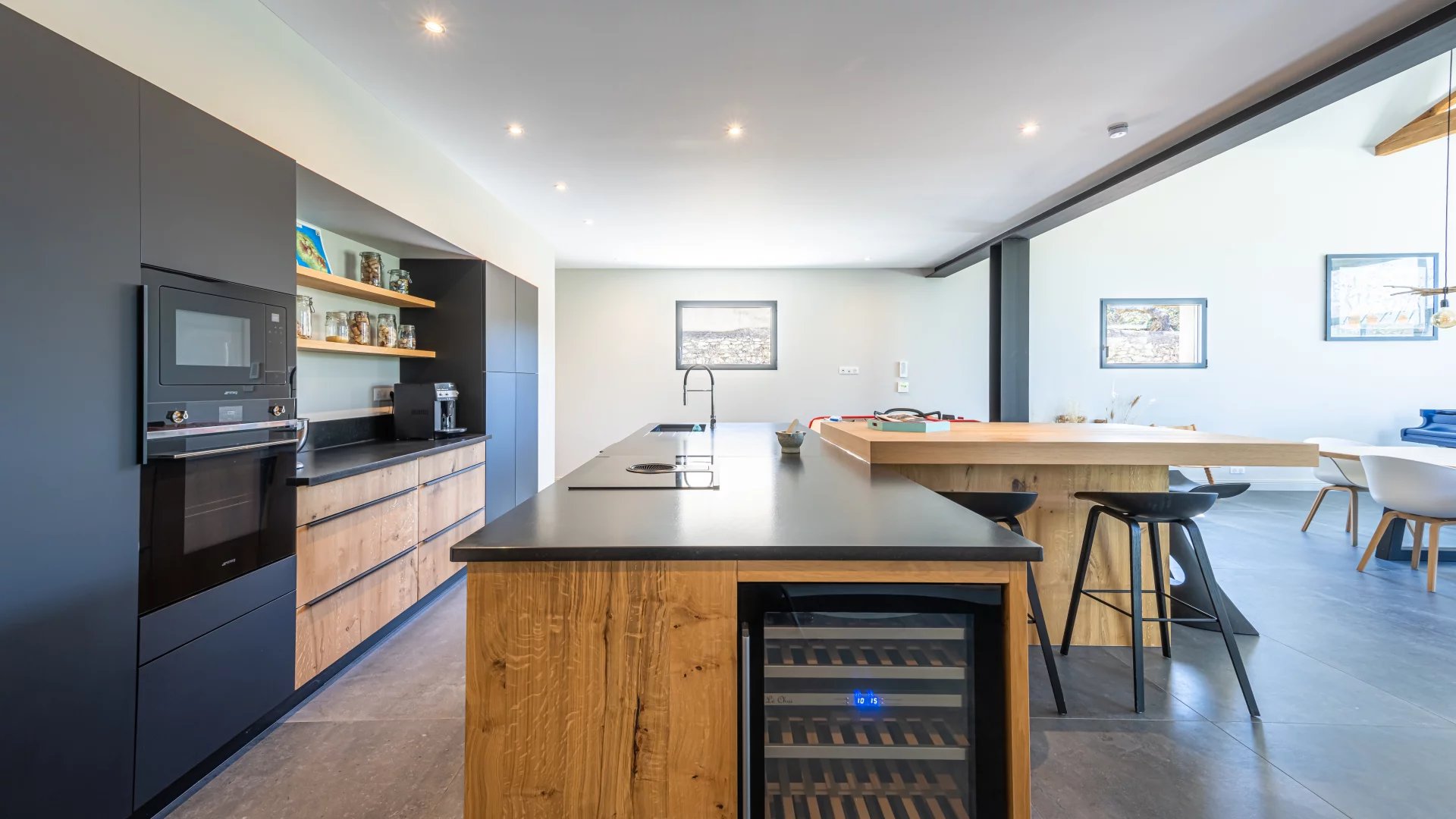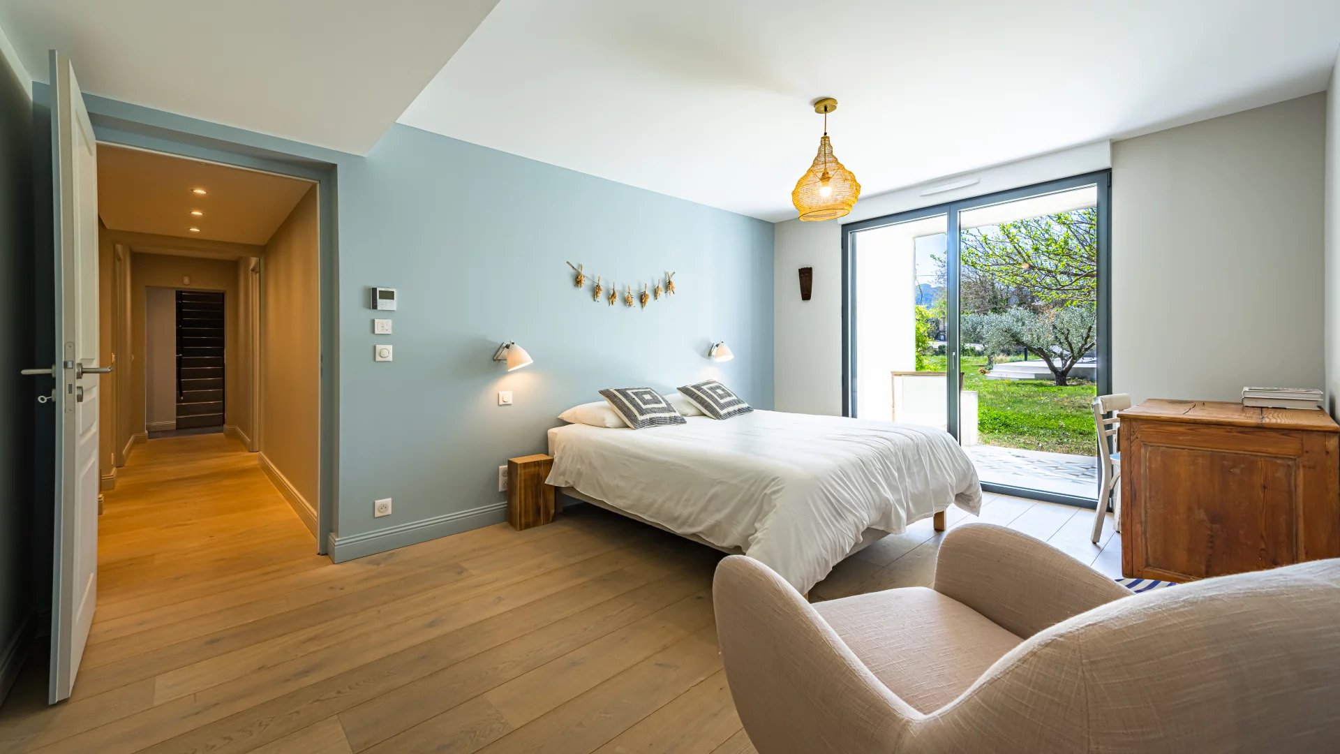 The pluses: two secure garages, reversible air-conditioning and underfloor heating / cooling, electric shutters with home automation system and electric gates.