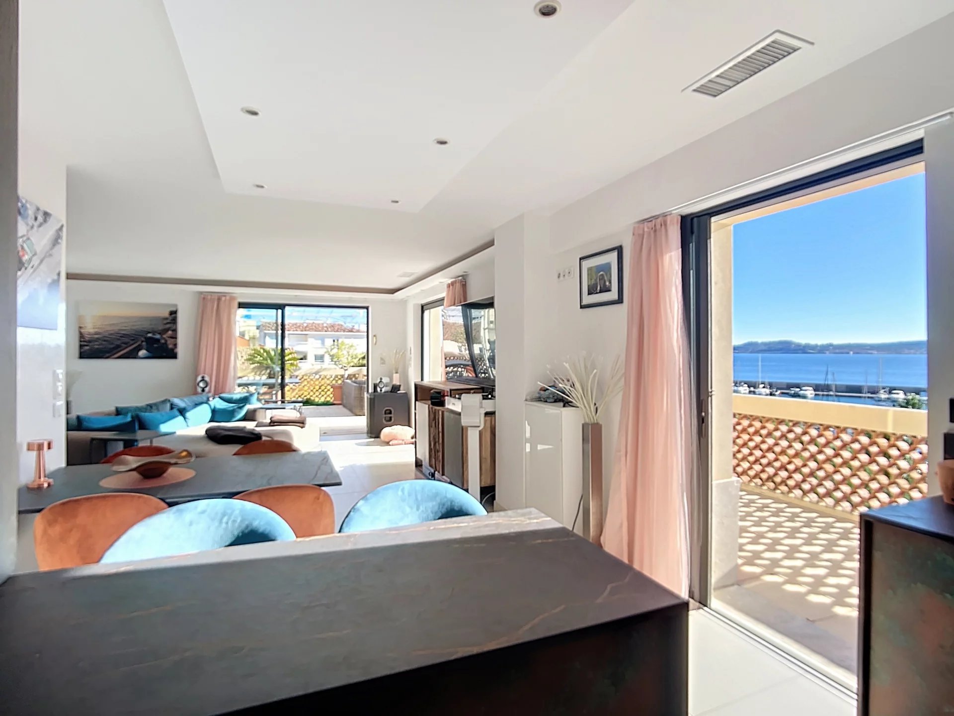 For sale top floor 4 room apartment with a panoramic sea view, in Sainte Maxime, Gulf of St Tropez, French Riviera