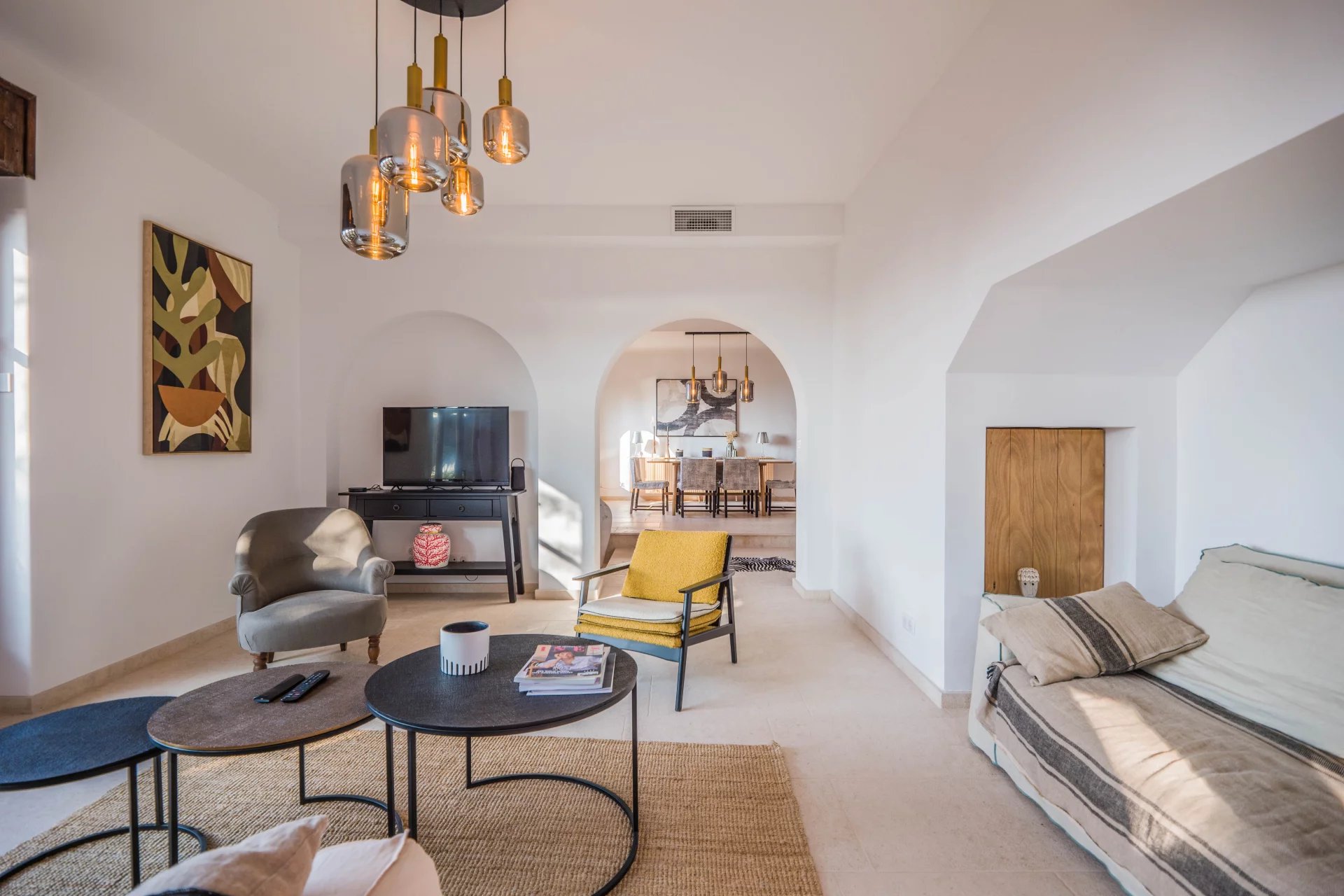 Step inside to find a spacious living area, graced by a cosy fireplace that adds warmth and charm. The villa seamlessly combines traditional aesthetics with contemporary amenities, including high-speed internet connectivity. A sophisticated alarm system guarantees peace of mind, while irrigation sprinklers maintain lush gardens effortlessly, enhancing the villa’s natural beauty.
