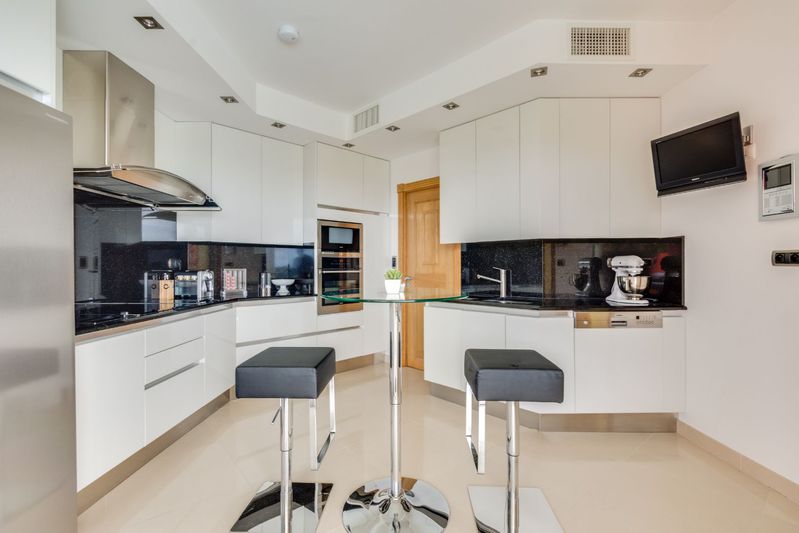 Inside its light and bright accommodation you will find, through the front door a good sized entrance hall, leading into a luxurious and impressive large living room opening onto the terrace, dining room, independent fitted kitchen with gourmet fittings, 3 bedrooms with shower room including the master suite with dressing room and bathroom with shower. An office.