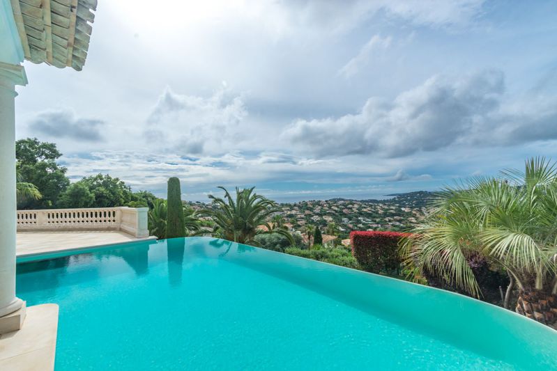 Sainte-Maxime villa for sale. In a secure domain, magnificent view of the sea and the hills for this superb recent villa built with quality materials.